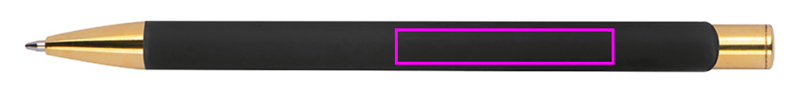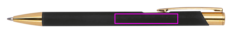 Alumiinista valmistettu kuulakärkikynä kullanvärisillä pinnoitteilla, kumiviimeistelyllä ja suurella kapasiteetilla kirjoitettavalla sinisellä täytteellä. Logosi laseroidaan leikkeen oikealle puolelle, se näkyy kullan värisenä.