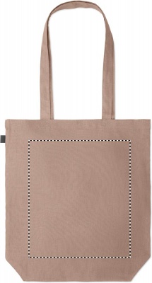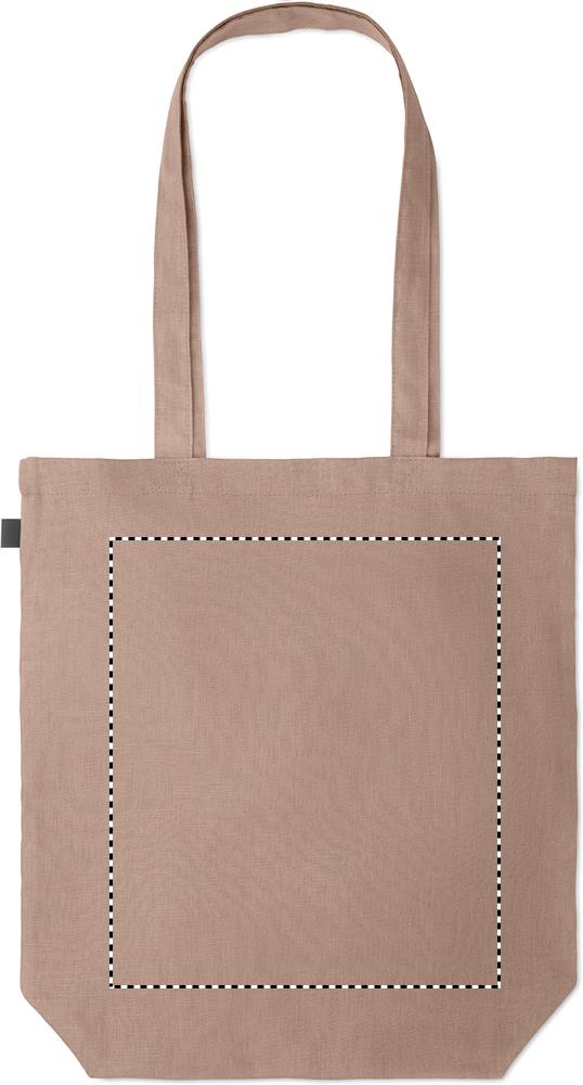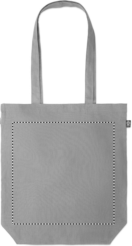 200gr/m² 100% hamppukankaasta valmistettu laukku, pitkillä kahvoilla ja pohja levikkeellä.