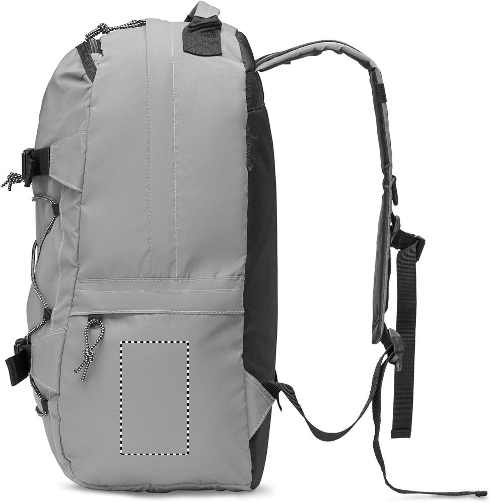 Reppu heijastavaa 190T polyesteriä, jossa on naru edessä. Pehmustettu selkä, hihnat ja pohja. Siinä on lokero 15'' kannettavalle tietokoneelle. Toisella puolella verkkotasku ja toisella puolella vetoketjullinen tasku.