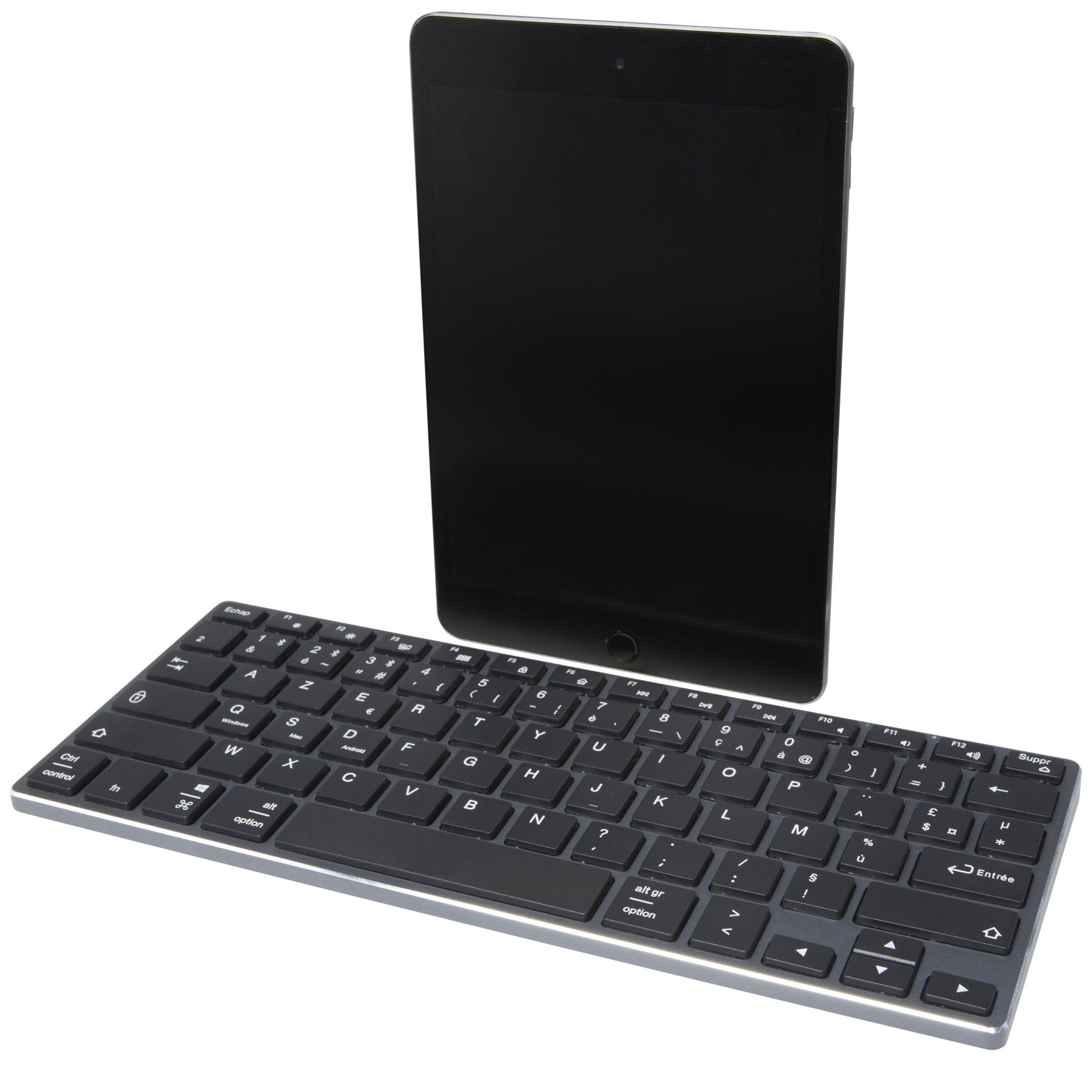 Kevyt ja silti kestävä ja tyylikäs näppäimistö (78 näppäimen AZERTY-asettelu) alumiinikotelolla. Näppäimistö tukee Bluetooth® 4.0 -tekniikkaa vakaan yhteyden ja pienen virrankulutuksen takaamiseksi, ja se on yhteensopiva pöytätietokoneiden/kannettavien, tablet-laitteiden, älypuhelinten, äly-TV:n ja muiden Bluetooth®-laitteiden kanssa. Toimintaetäisyys ulottuu 10 metriin, ja näppäimistössä on 350 mAh:n sisäänrakennettu ladattava akku. Toimitetaan korkealaatuisessa voimapaperipakkauksessa, jossa on värikäs tarra.
