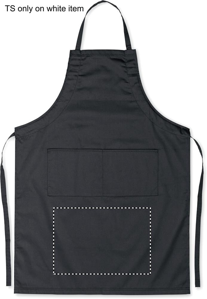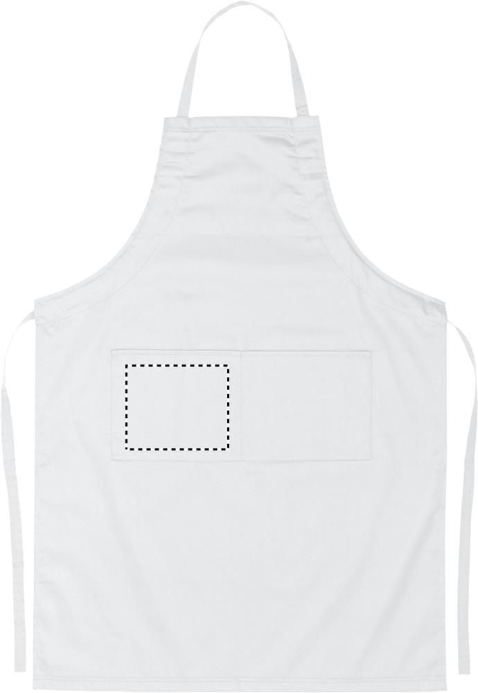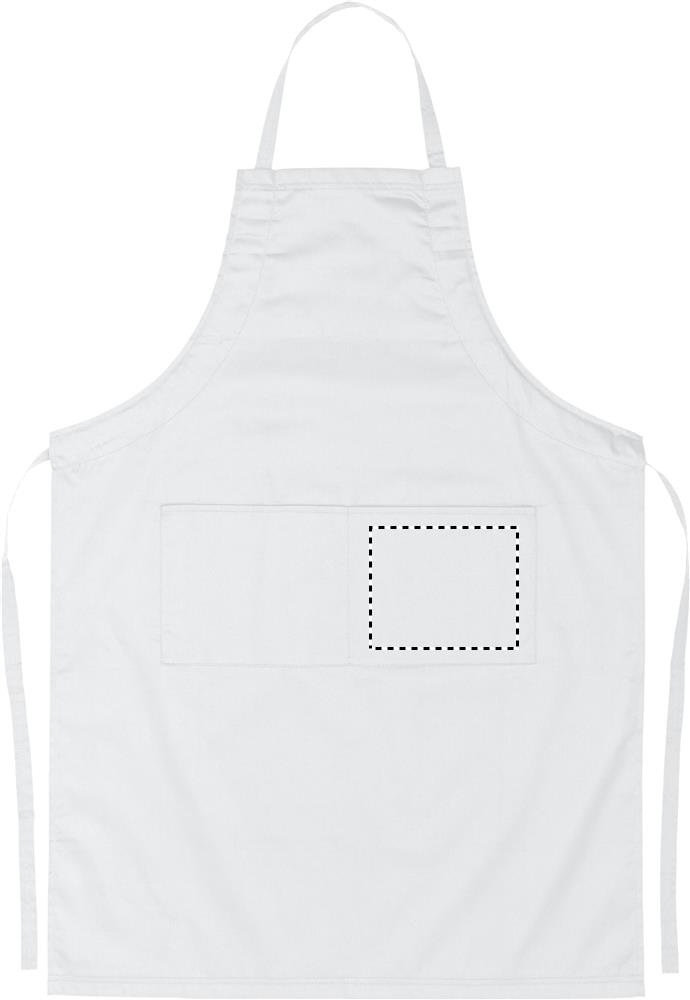 190gr/m² säädettävä keittiöesiliina kahdella etutaskulla, 10% puuvillaa ja 90% polyesteriä.
