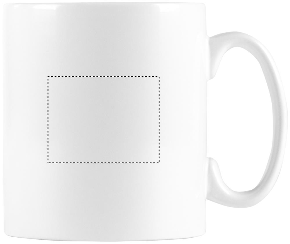 Keraaminen muki 300 ml, erikoispinnoite sublimaatiota varten. Yksittäispakattuna valkoiseen pahvilaatikkoon.
