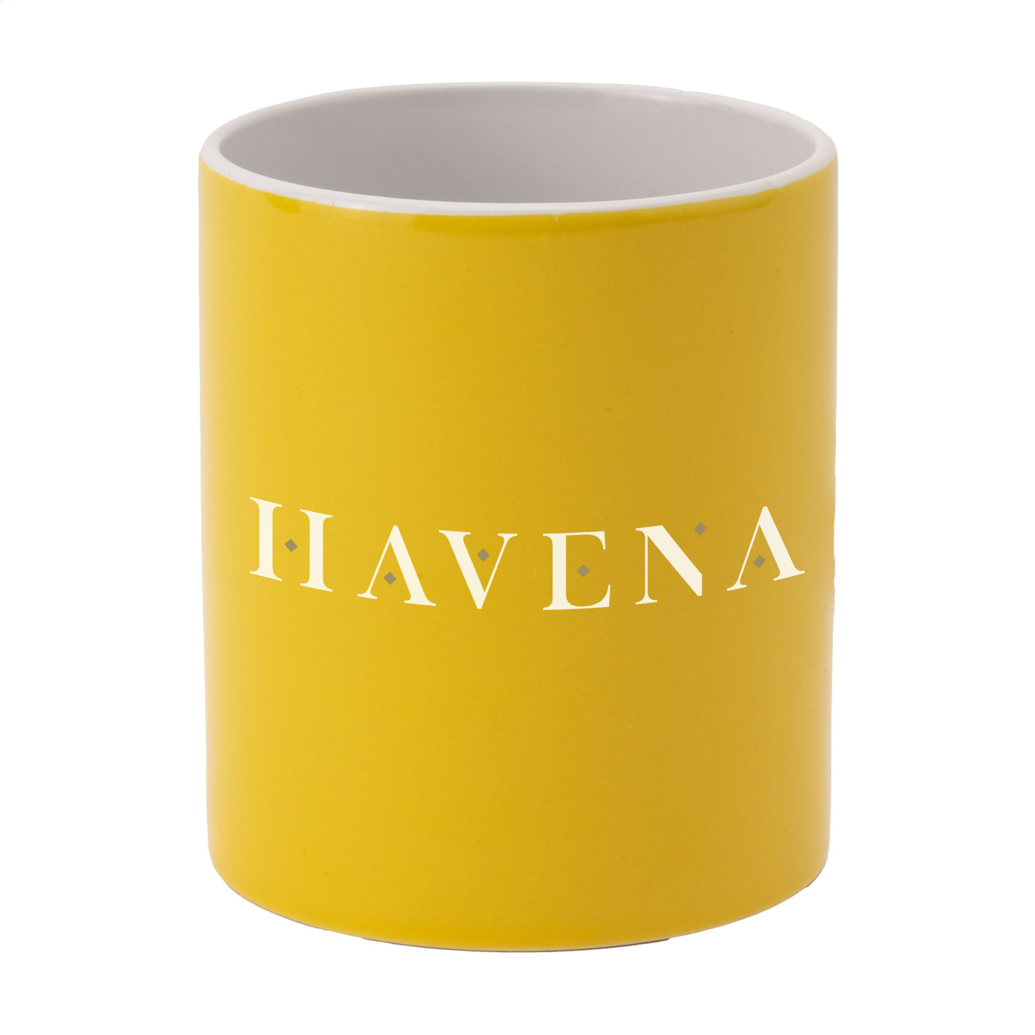 Laadukas keraaminen muki. Täysin valkoinen tai värillinen ulkopinta. Astianpesukoneen kestävä. Jälki on astianpesukoneessa testattu ja sertifioitu: EN 12875-2. Tilavuus 350 ml.