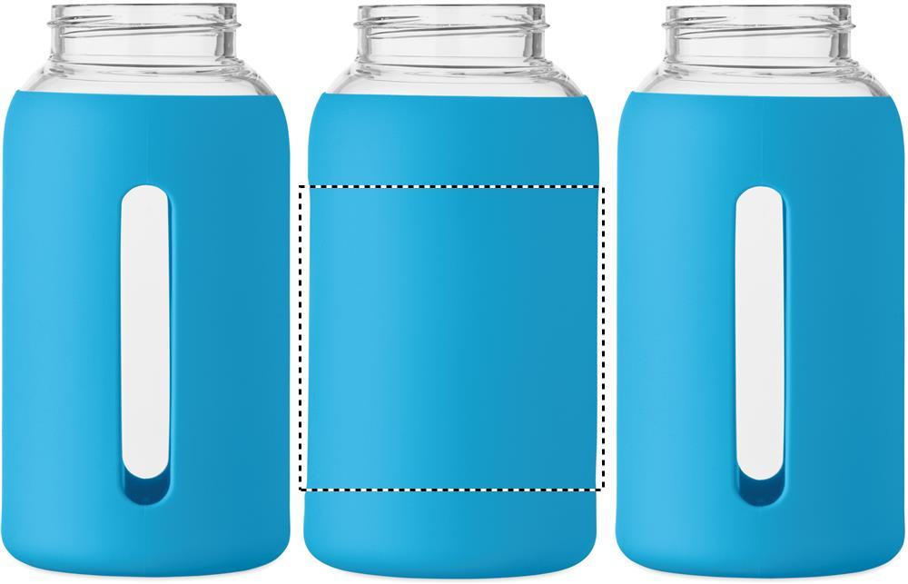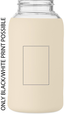 Korkea borosilikaattilasista valmistettu pullo, jossa silikoninen pussi ja kahvallinen PP-korkki. Tilavuus: 600 ml