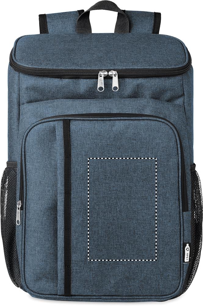 600D RPET- kylmälaukku-/ piknikreppu, sisältää 2 hengen ruokailutarvikkeet. Ruostumattomasta teräksestä valmistettu veitsi, PP- haarukan, lusikka ja kupin.