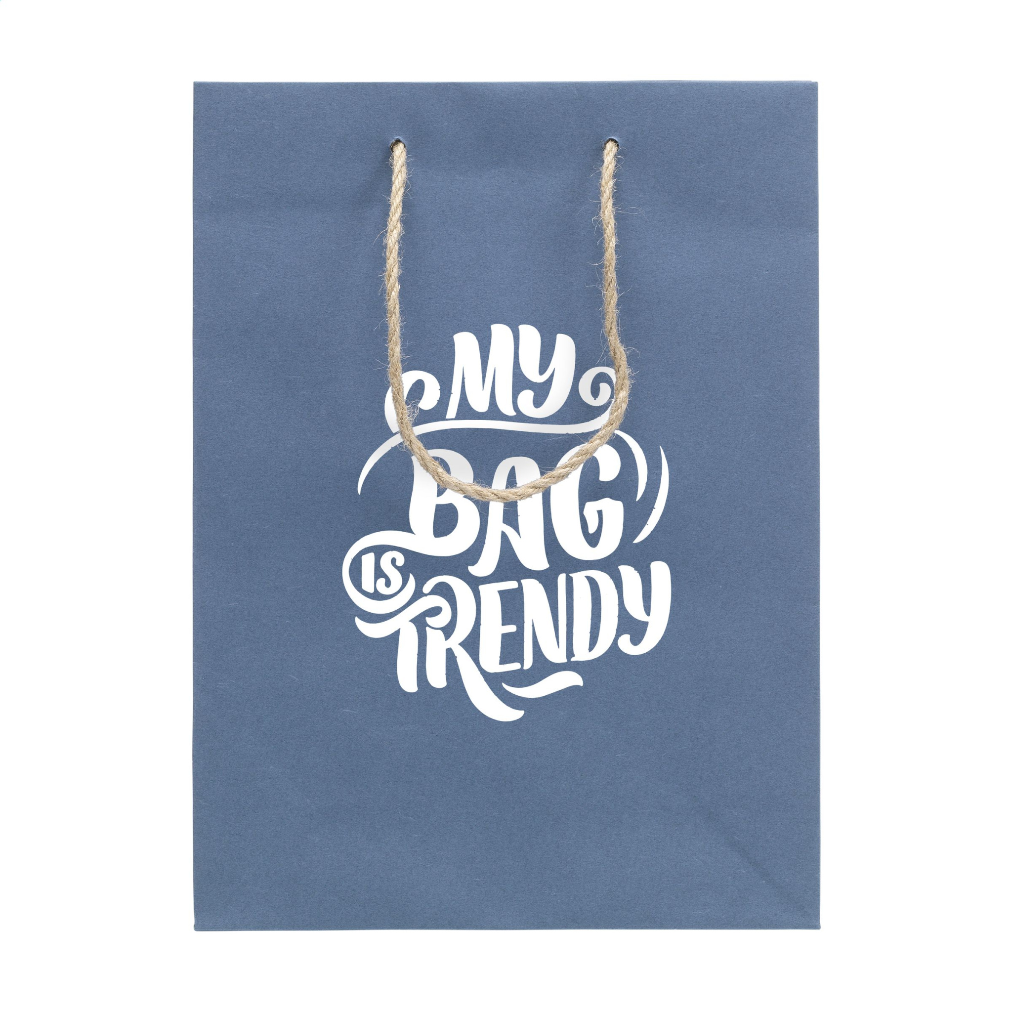 Vau! Tukeva ECO-lahjakassi (koko M), joka on valmistettu kierrätyspaperista, jossa on farkkukuituja (180 g/m²). Kierrätetyistä farkkukankaista johtuen sinisen sävy voi vaihdella pussikohtaisesti. Sininen väri antaa laukulle trendikkään ilmeen. Laukussa on kaksi lyhyttä juuttikantolenkkia, taitettu pohja ja sivutaitto. Sopii kaikenlaisiin myynninedistämistarkoituksiin. Tämän pussin tuotantoa varten ei kaadeta puita.