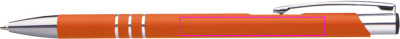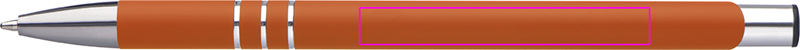 Ohut metallikuulakynä, jossa kumipinnoite ja sininen kirjoitusmuovitäyttö. Logosi kaiverretaan klipin alle.