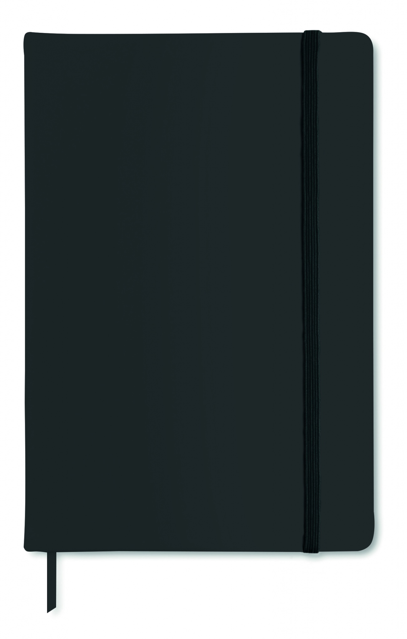 A5 muistikirja kovalla PU kannella, sisältää 192 tyhjää sivua (96 arkkia) ja väriltään yhteensopivan värikkään kumilenkin.