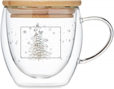 Kaksiseinäinen 220 ml borosilikaattimuki kuusikuvioinnilla ja bambukannella.