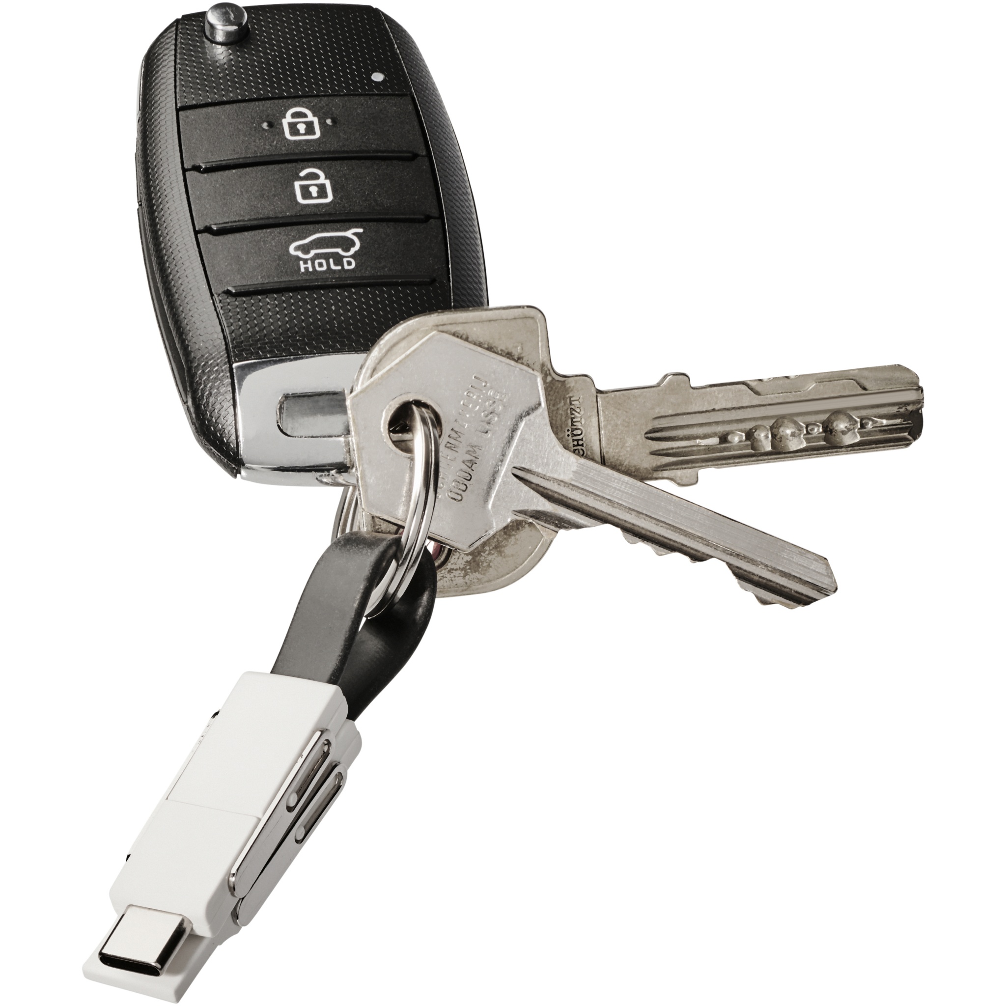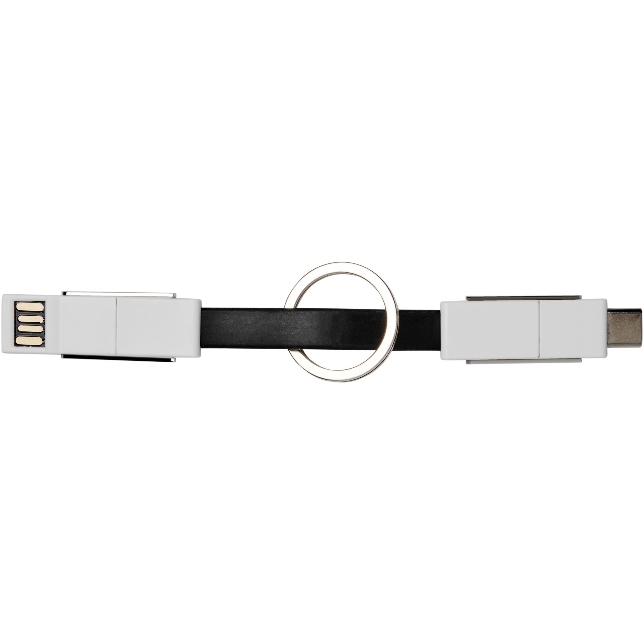 Tämä 4-in-1-kaapeli kattaa kaikki lataustarpeet. Siinä on Tyypin A USB, tyypin C USB ja 2-in-1-kärki, joka sopii niin iOS- kuin Android-laitteisiin. Sitä voi käyttää lataamiseen ja tiedonsiirtoon. Mukana tulee avainketju, ja magneetit helpottavat kuljetusta.