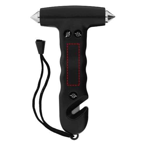 Hätävasara rannehihnalla ja sisäänrakennetulla vyöleikkurilla kahvassa. Kahden karkaistusta teräksestä valmistetun ikkunansärkijän ja hihnaleikkurin avulla pystyt vapautumaan hätätilanteessa.
