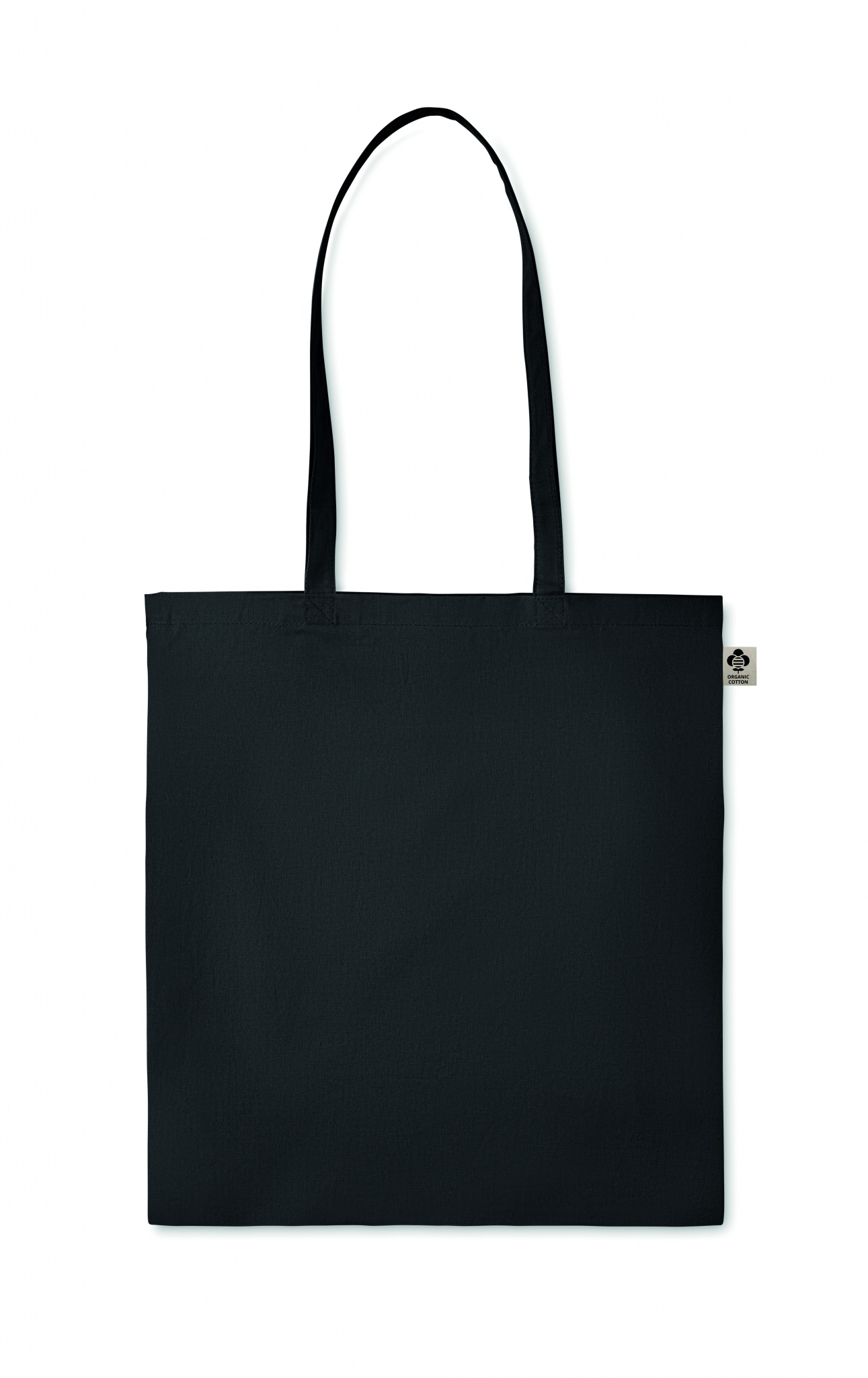 140 gr/m² 100% luomupuuvillasta valmistettu kassi, pitkillä kahvoilla.