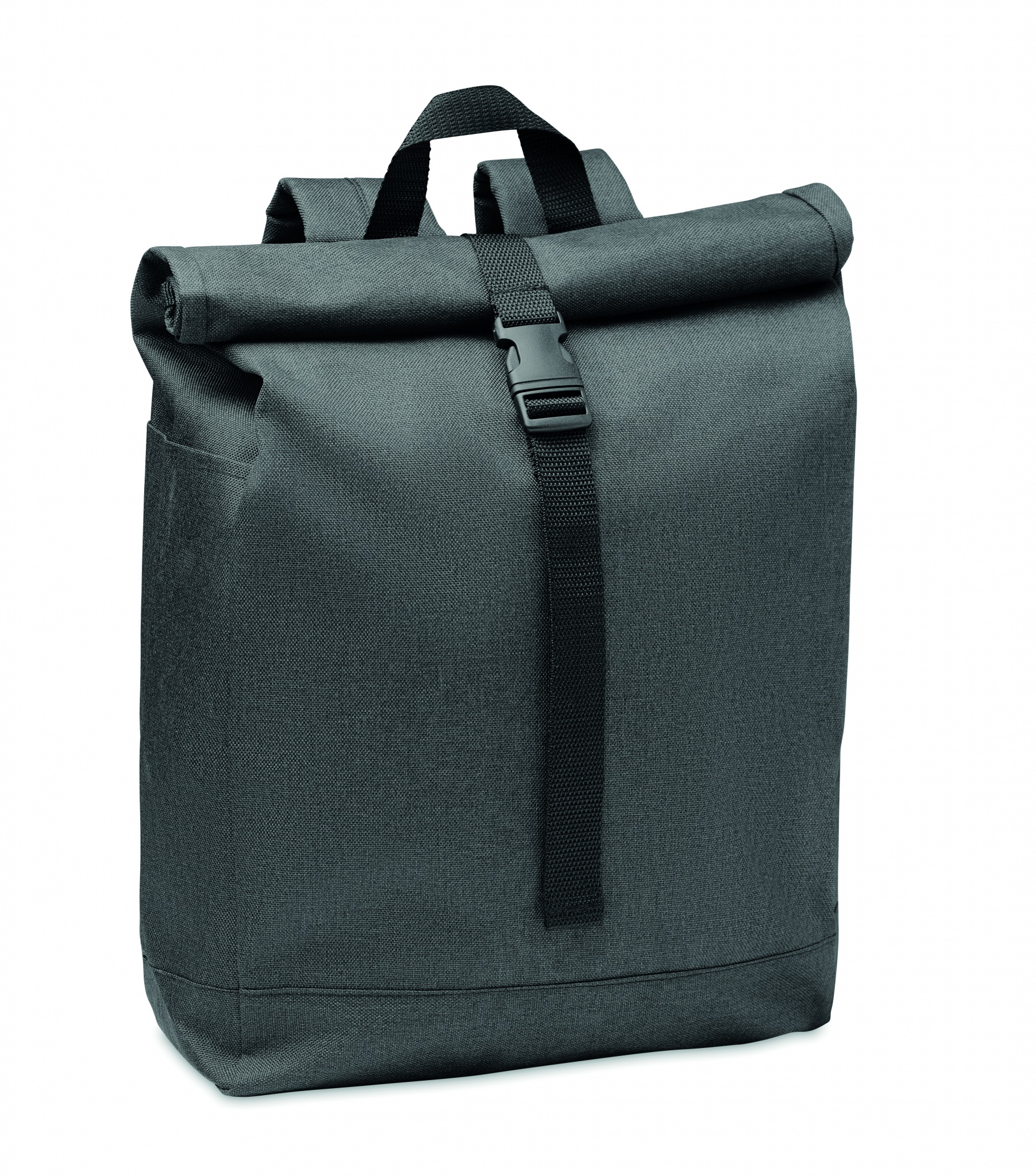 600D RPET reppu, rullasuljin kiinnityksellä. Maksimi kanto painoraja 5 kiloa.