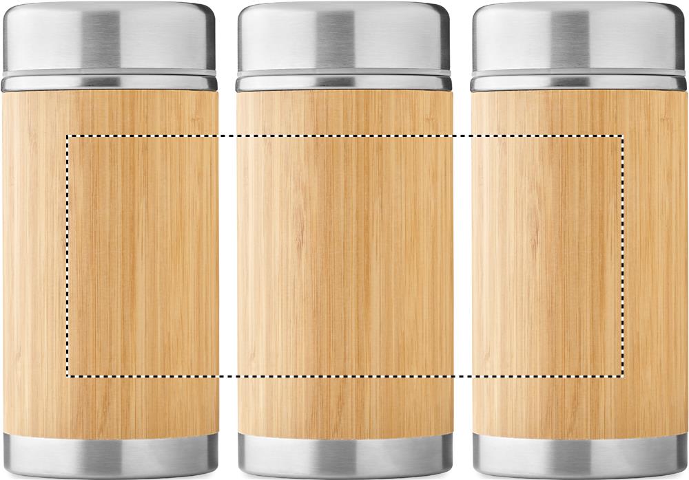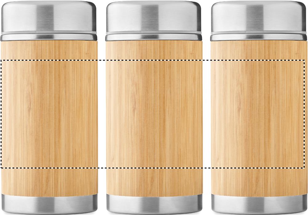 Kaksiseinäinen ruostumattomasta teräksestä valmistettu ruokatermos jossa on kierrekorkki ja ulkopinta bambua. Tilavuus 600 ml.