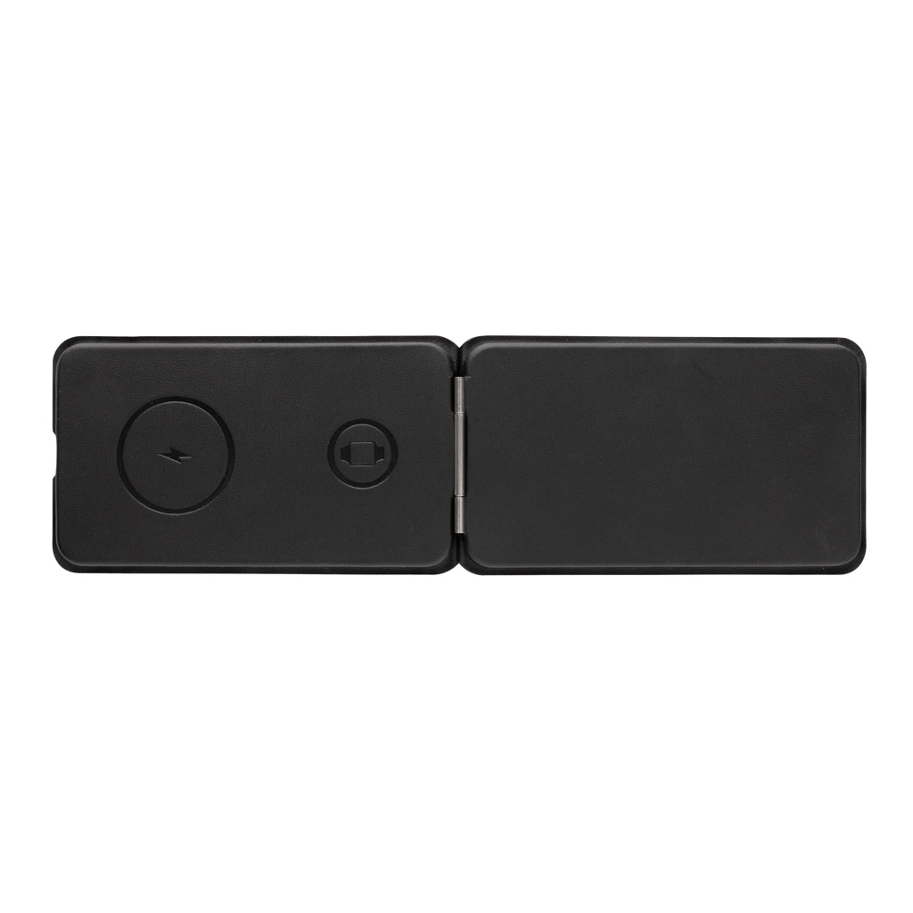 Luksusta huokuva ja taiteltava 3-in-1 langaton laturi, joka on valmistettu RCS-sertifioidusta kierrätetystä PU-materiaalista. Kierrätetyn materiaalin kokonaismäärä: 5% tuotteen kokonaispainosta. RCS-sertifiointi takaa kierrätysmateriaalien täysin sertifioidun toimitusketjun. Langattomassa laturissa on magneettinen 15W langaton latauslaatta etupuolella. Takapuolella on lisäksi 5W langaton latauslaatta kuulokkeille tai muille pienille langattomille latauslaitteille, ja 2.5W langaton latauslaatta älykelloille (vain Apple-kelloille). Mukana on RCS-sertifioitu 120 cm kierrätetty TPE-kaapeli. Pakattu FSC®-mix kraft-pakkaukseen. Tuote ja lisävarusteet ovat 100% PVC-vapaita. Optimaaliseen käyttöön sisääntulo: 9V/3A. Ulostulo: etuosa: 9V/1,1A; 9V/1,67A/(15W), kuulokkeet: 5V/1A (5W), kello: 5V/0,5A.