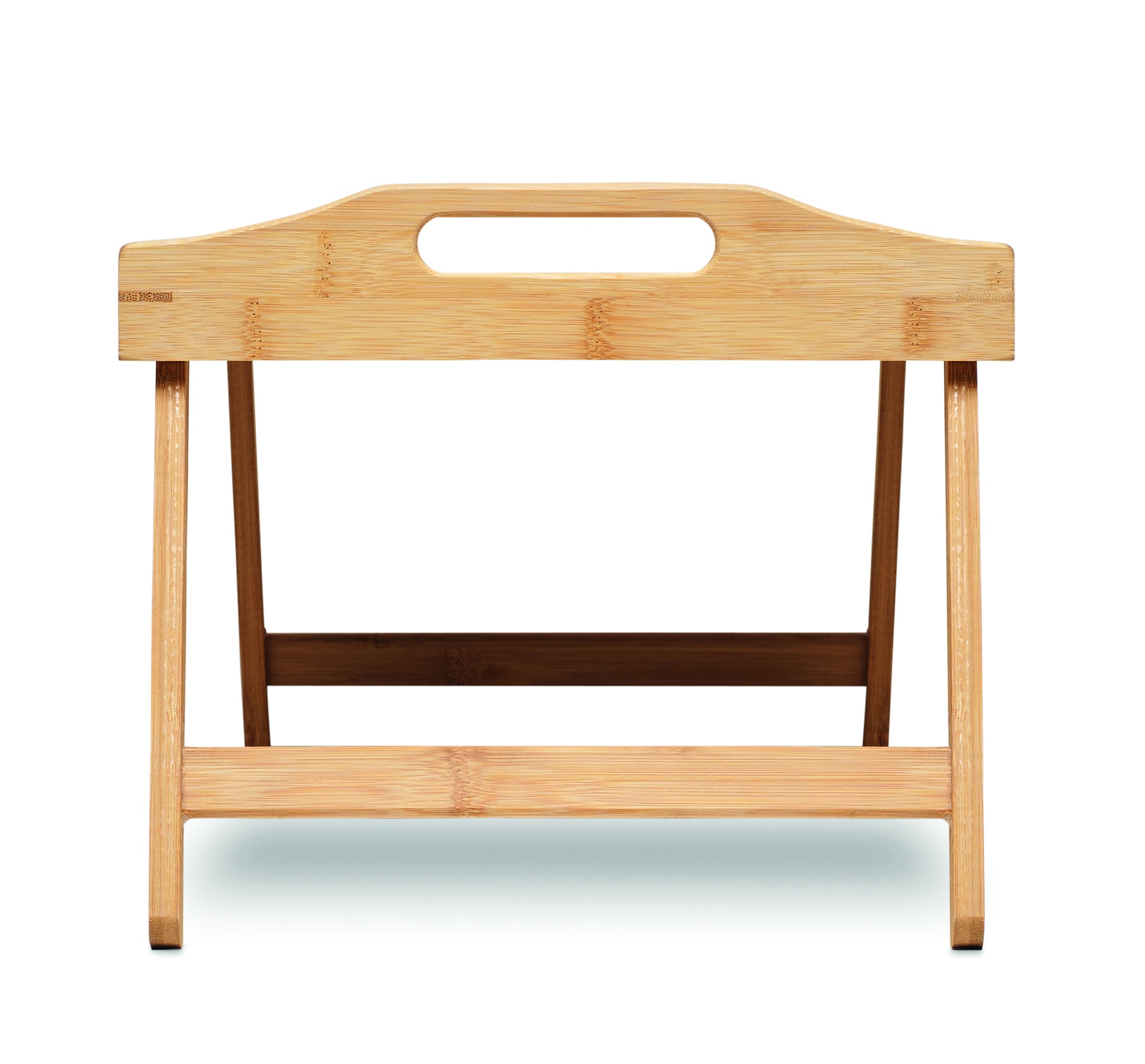Taitettava bambutarjotin vaneripohjalla.