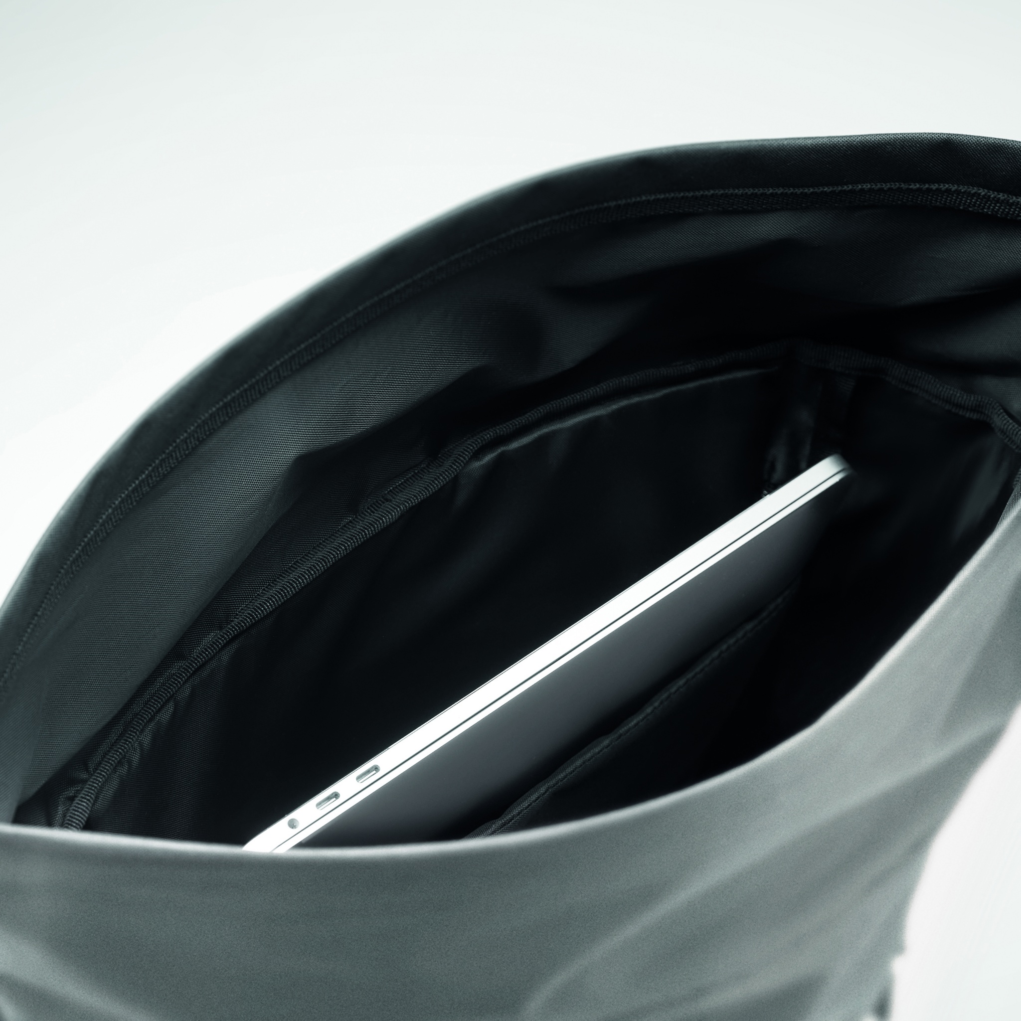 Tietokonereppu 15 tuuman tietokoneelle heijastavaa 190T polyesteriä. Pehmustettu selkäosa, hihnat ja pohja. Vetoketjullinen tasku edessä. Alaosa 600D-kierrätyspolyesteriä. Reppu suljetaan yläreunasta rullaamalla.
