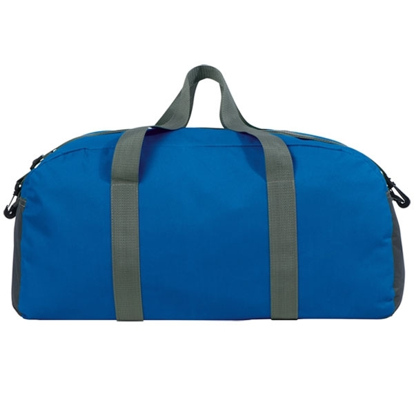 Suuri 600D polyesteri urheilukassi, jossa suuri sisätasku, kantokahvat ja säädettävä olkahihna. Painamme logosi yhdelle puolelle.