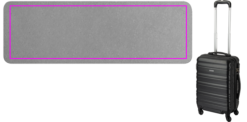 Kestävä matkavaunu, jossa on erilaisia sisätaskuja ja käsimatkatavarakoko. Painamme logosi tarraan.