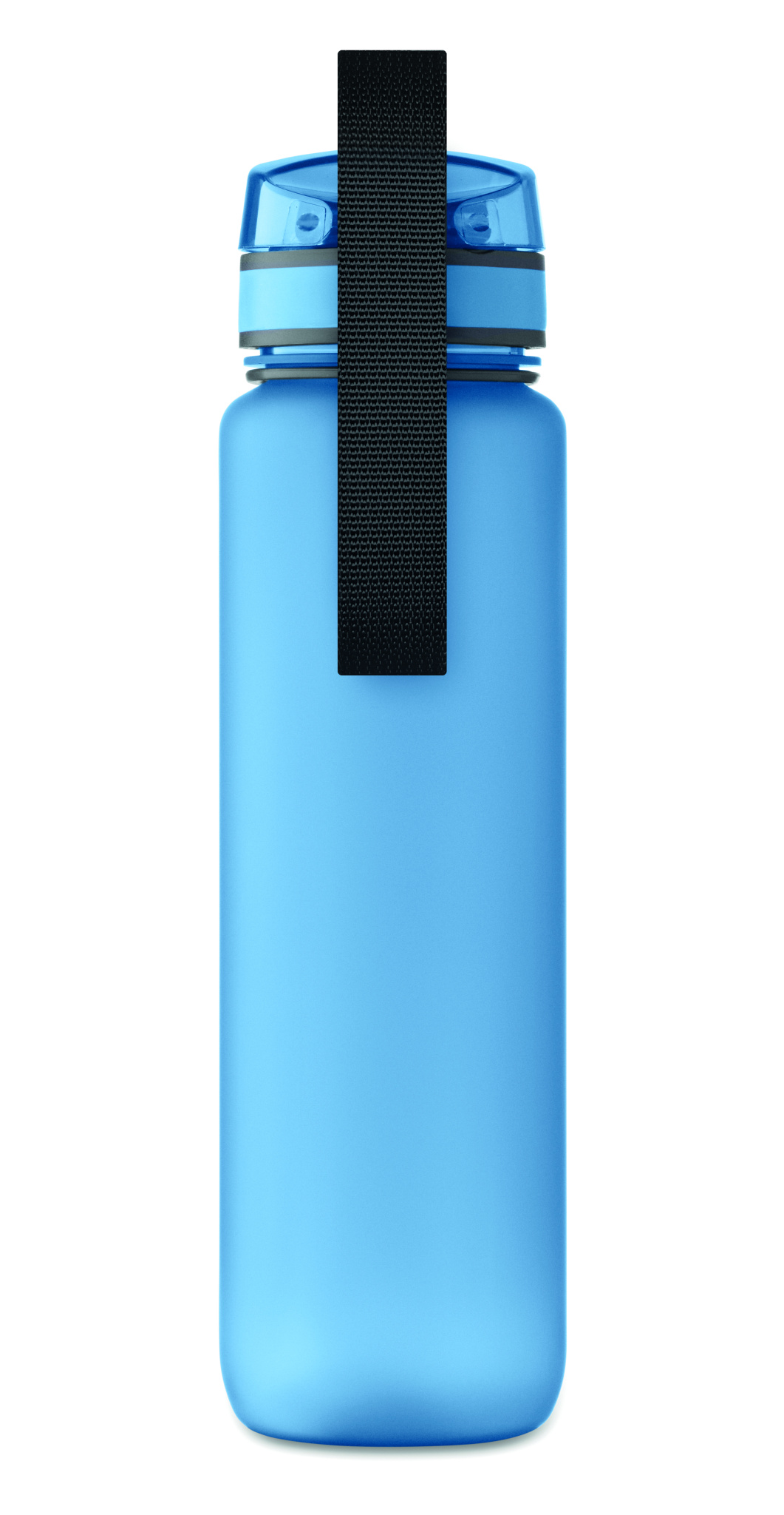 Urheilujuomapullo RPET-muovista, motivoivat aikamerkinnät, yhdellä kädellä avattava käännettävä kansi, turvalukko ja kantohihna. Vuotamaton. Tilavuus: 1 litra.