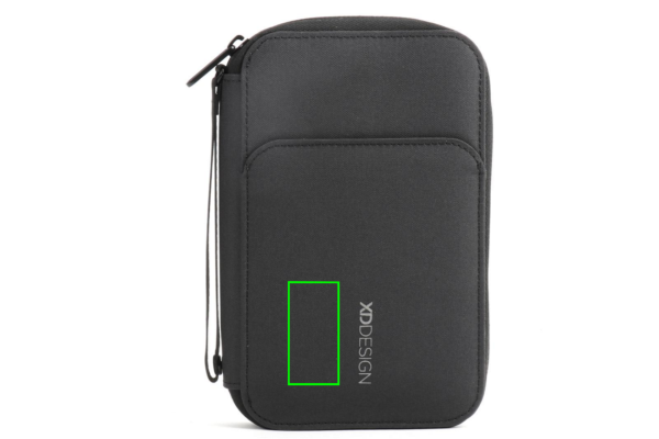XD Design passikotelo pitää omaisuutesi suojattuna ja helposti saatavilla. Passikotelo on RFID suojattu, ja sen magneettisulkimella varustettuun etutaskuun mahtuu esim. matkaliput. Tätä passikoteloa voi käyttää myös puhelinpidikkeenä, joten voit esim. katsoa videoita matkustaessasi. 3-in-1 säilytystila mahdollistaa käytön myös lompakkona ja puhelinkotelona. Sopii enintään 5,5" puhelimelle. Valmistettu kierrätetyistä materiaaleista. Rekisteröity design®