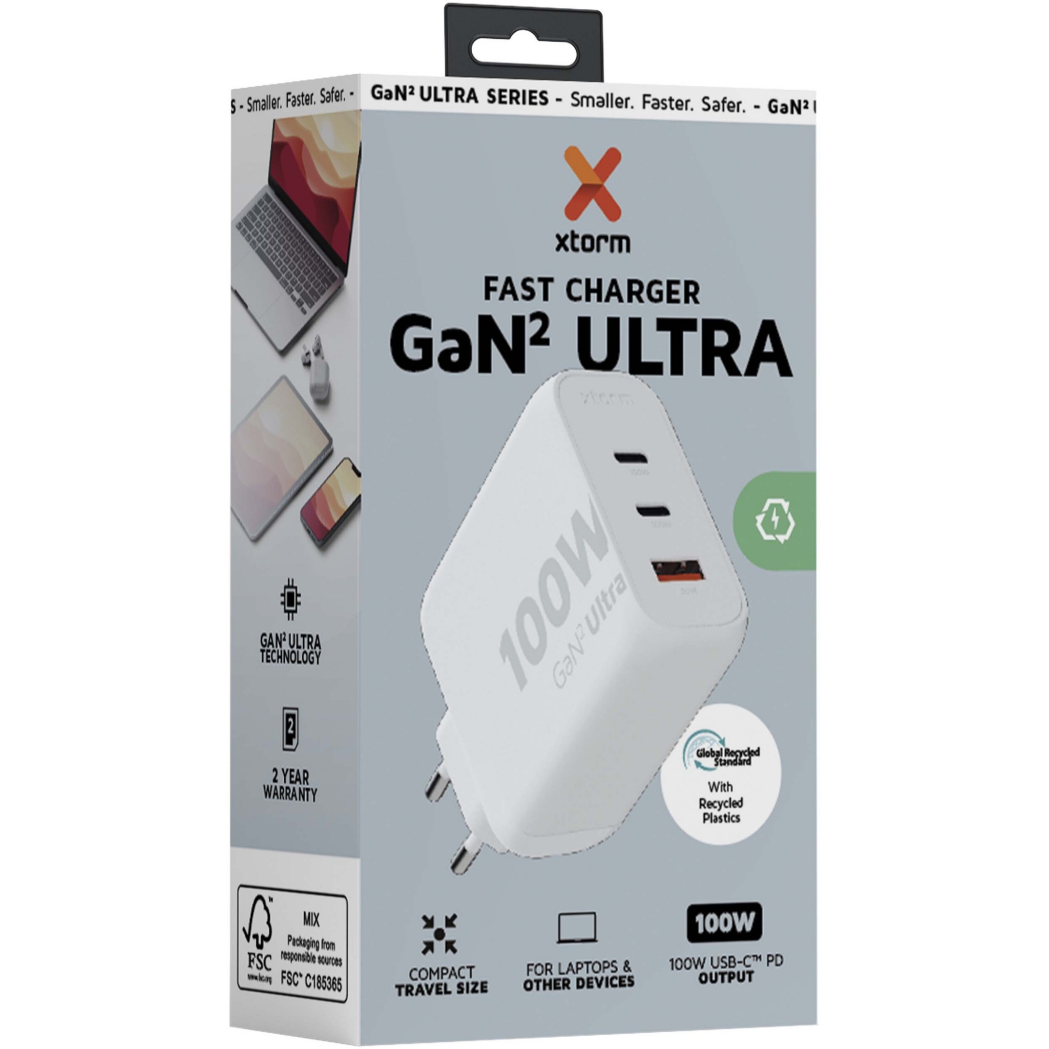 100 W GaN² Ultra -seinälaturi on nyt kompaktimpi ja tehokkaampi kuin koskaan ennen. Kompaktin muotoilunsa ja kolmiporttisen toiminnallisuutensa ansiosta tämä seinälaturi sopii täydellisesti matkoille, toimistoon tai kotiin. Jätteen vähentämiseksi ja kestävämmän tulevaisuuden edistämiseksi laturi on valmistettu 97-prosenttisesti kierrätetystä muovista. Lähtö: 2 x USB-C 100 W:n virransyöttö ja 1 USB-A 18 W:n pikalataus 3.0. Mukana käyttöopas.