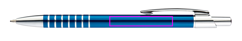 Plonas metalinis tušinukas su mėlynos spalvos užpildu ir graviruota rankenos zona. Po klipu išgraviruojame Jūsų logotipą.