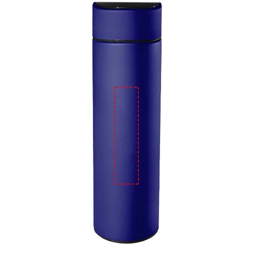 Dvisienis 500 ml izoliuotas nerūdijančio plieno butelis su antibakteriniu apdorojimu ir temperatūros jutikliu. „Touch & Light“ sistemos dėka gėrimo temperatūra rodoma ant butelio kamštelio (Celsijaus). Tinka tiek karštiems, tiek šaltiems gėrimams. Pristatoma cilindrinėje dovanų dėžutėje, pagamintoje iš perdirbto popieriaus. Dydis: Ø 47 x 225 mm. Baterija: CR 2450 (3V). Baterijos pakeisti negalima. Gali rodyti temperatūrą 20 000 kartų.