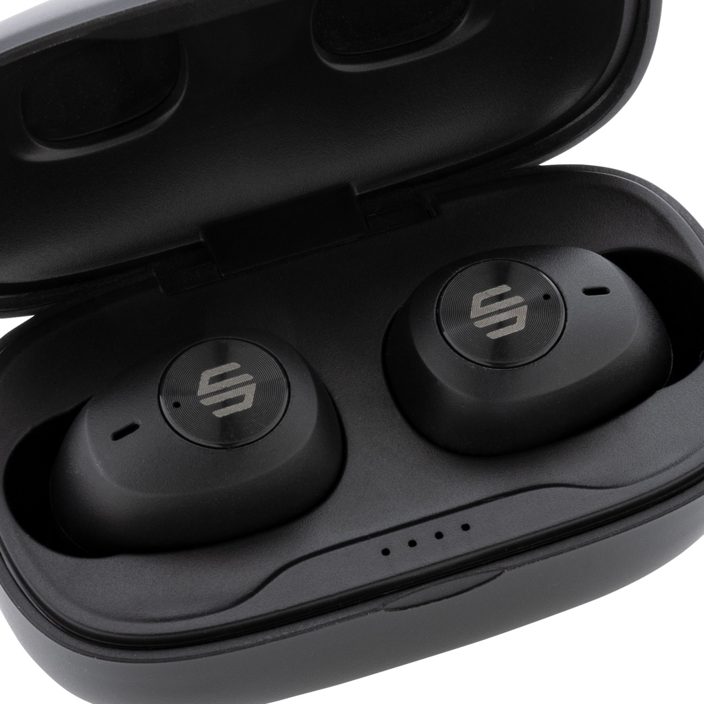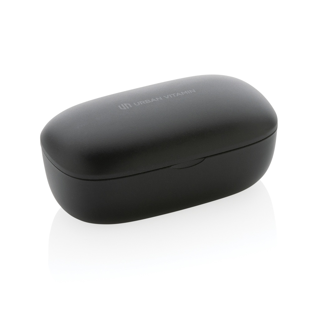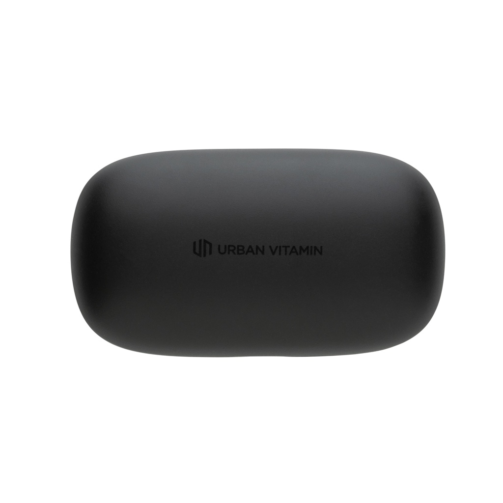 Atverot korpusu un ieliekot austiņas, skaņa atskan. Austiņas un pārnēsājamais uzlādes futrālis ir izstrādāti tā, lai tos varētu nēsāt līdzi neatkarīgi no tā, kur dodaties, un ērti ievietoties kabatā. Ērtajām austiņām ir līdz 6 stundām klausīšanās laiks, un uzlādes futrālis ļauj atskaņot līdz 20 stundām. Pietiek, lai jūs turpinātu visu dienu! Saņemot zvanu, vienkārši atbildiet uz to stereo skaņā, pateicoties ENC integrētajam mikrofonam, kas nodrošina perfektu zvanu kvalitāti. IPX 4 vērtējums padara austiņas izturīgas pret laikapstākļiem, tāpēc nav jāuztraucas tās nest ārā. Austiņas un uzlādes maciņš izgatavoti no RCS (Recycled Claim Standard) sertificēta pārstrādāta ABS. Kopējais pārstrādātais saturs: 55 %, pamatojoties uz izstrādājuma kopējo svaru. RCS sertifikācija nodrošina pilnībā sertificētu pārstrādāto materiālu piegādes ķēdi. Urban Vitamin preces ir izgatavotas bez PVC un iepakotas samazinātā plastmasas iepakojumā.