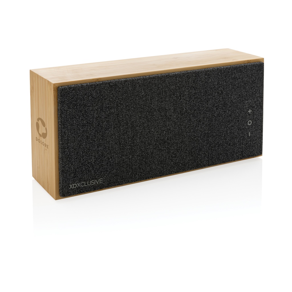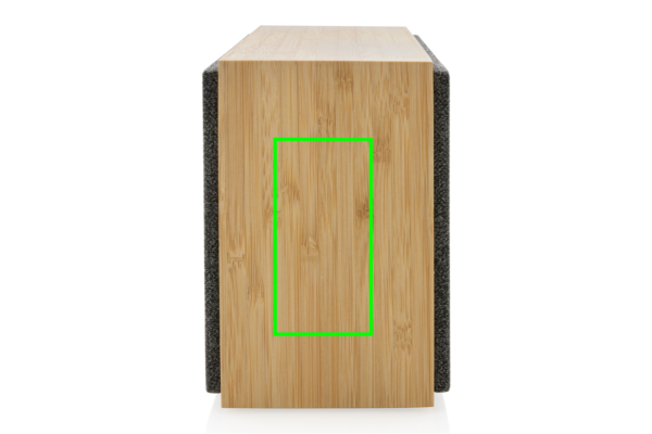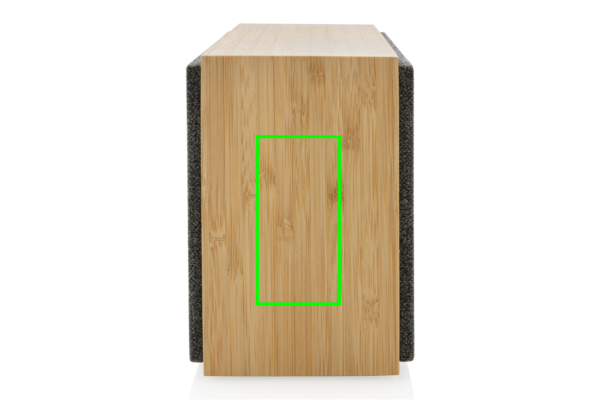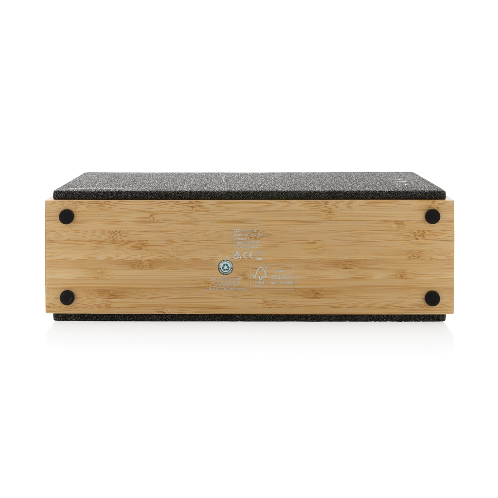 Grezns un jaudīgs 20 W skaļrunis ar skaidru skaņu un spēcīgiem basiem. Ārējais apvalks ir izgatavots no FSC 100% sertificēta bambusa. Plastmasas detaļas ir izgatavotas no RCS (Recycled Claim Standard) sertificēta pārstrādāta ABS. Kopējais pārstrādātais saturs: 17 %, pamatojoties uz izstrādājuma kopējo svaru. RCS sertifikācija nodrošina pilnībā sertificētu pārstrādāto materiālu piegādes ķēdi. Skaļrunim ir BT 5.1, kas nodrošina vieglu un vienmērīgu darbību līdz 10 metriem un zemu enerģijas patēriņu. 1200 mah akumulators nodrošina atskaņošanas laiku līdz 6 stundām, un to var pilnībā uzlādēt 3 stundu laikā. Ar paņemšanas funkciju un mikrofonu, lai atbildētu uz (video) zvaniem. Iepakots FSC mix kraft kastē. Ietver RCS sertificētu pārstrādātu TPE uzlādes kabeli.