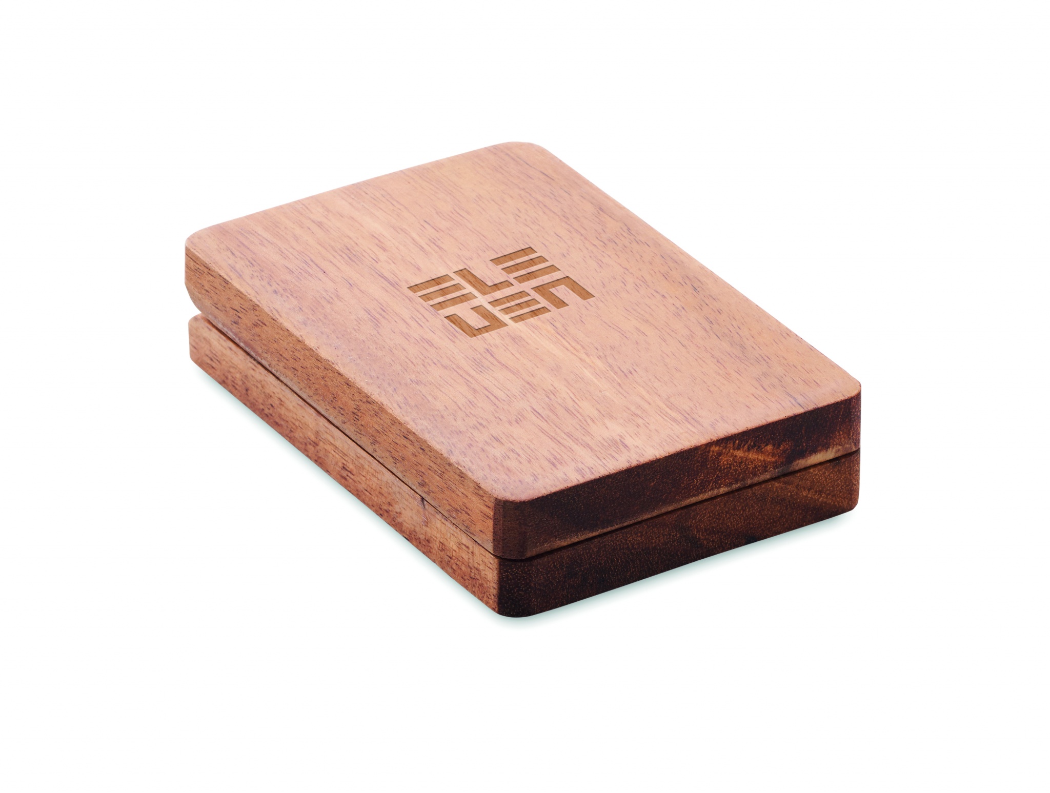 7-in-1 cable and connector set in bamboo case with magnetic closure and wrist strap. Data transfer and power transmission cable (480 Mbps): Type-C to Type-C. Adapters: Type-C to Type-A, Type-C connectors.