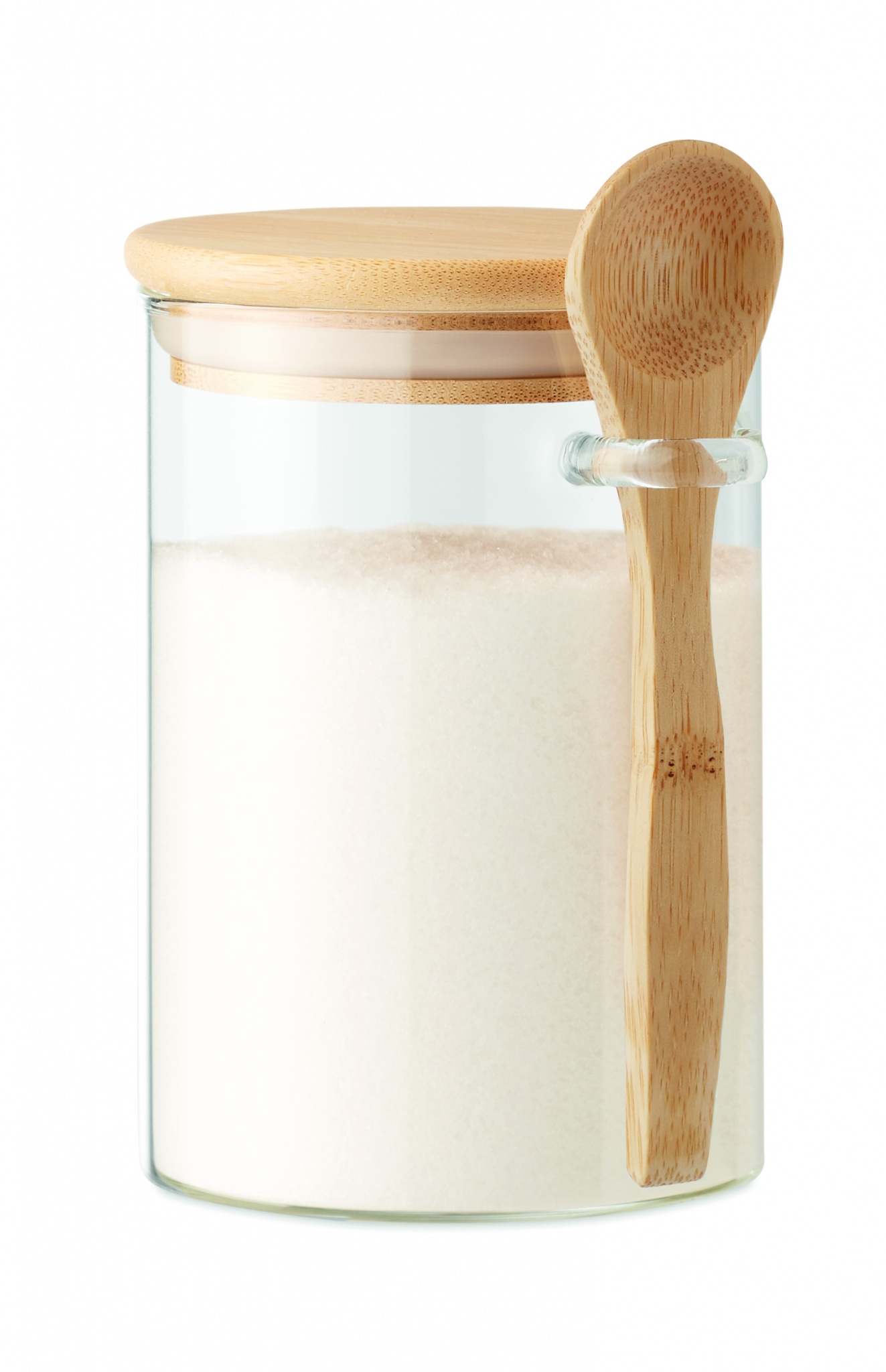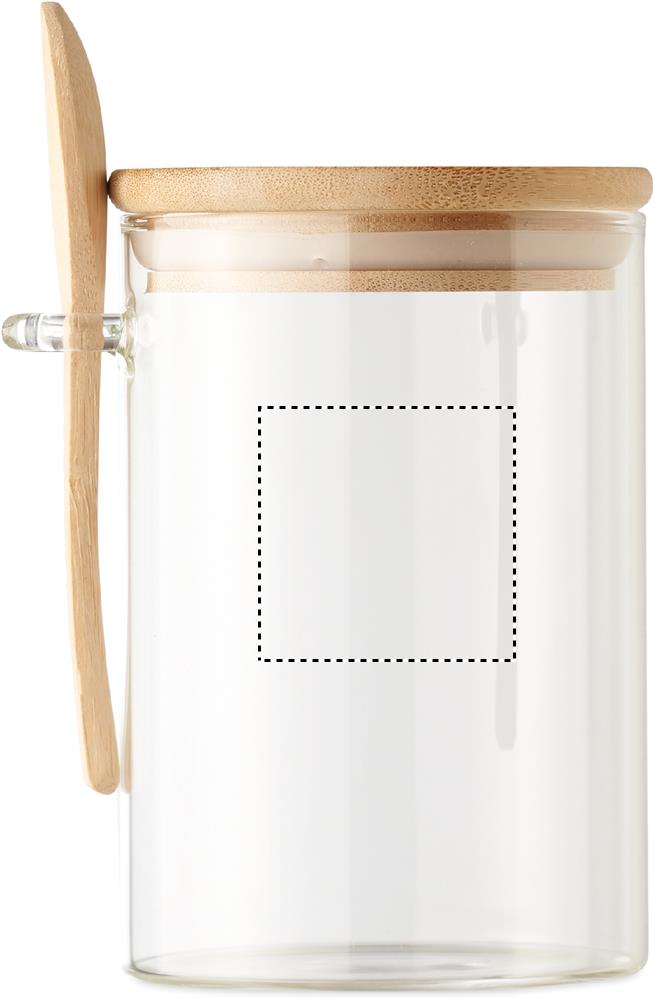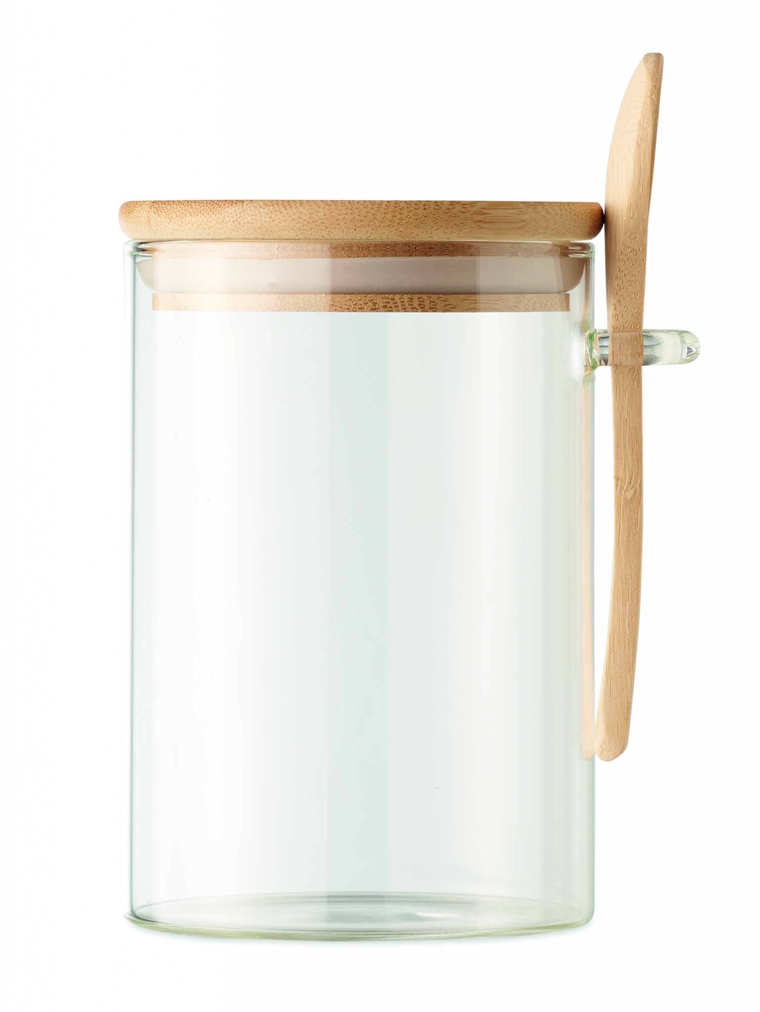 Банка для хранения из боросиликатного стекла с бамбуковой крышкой и ложкой. Емкость: 600 мл.