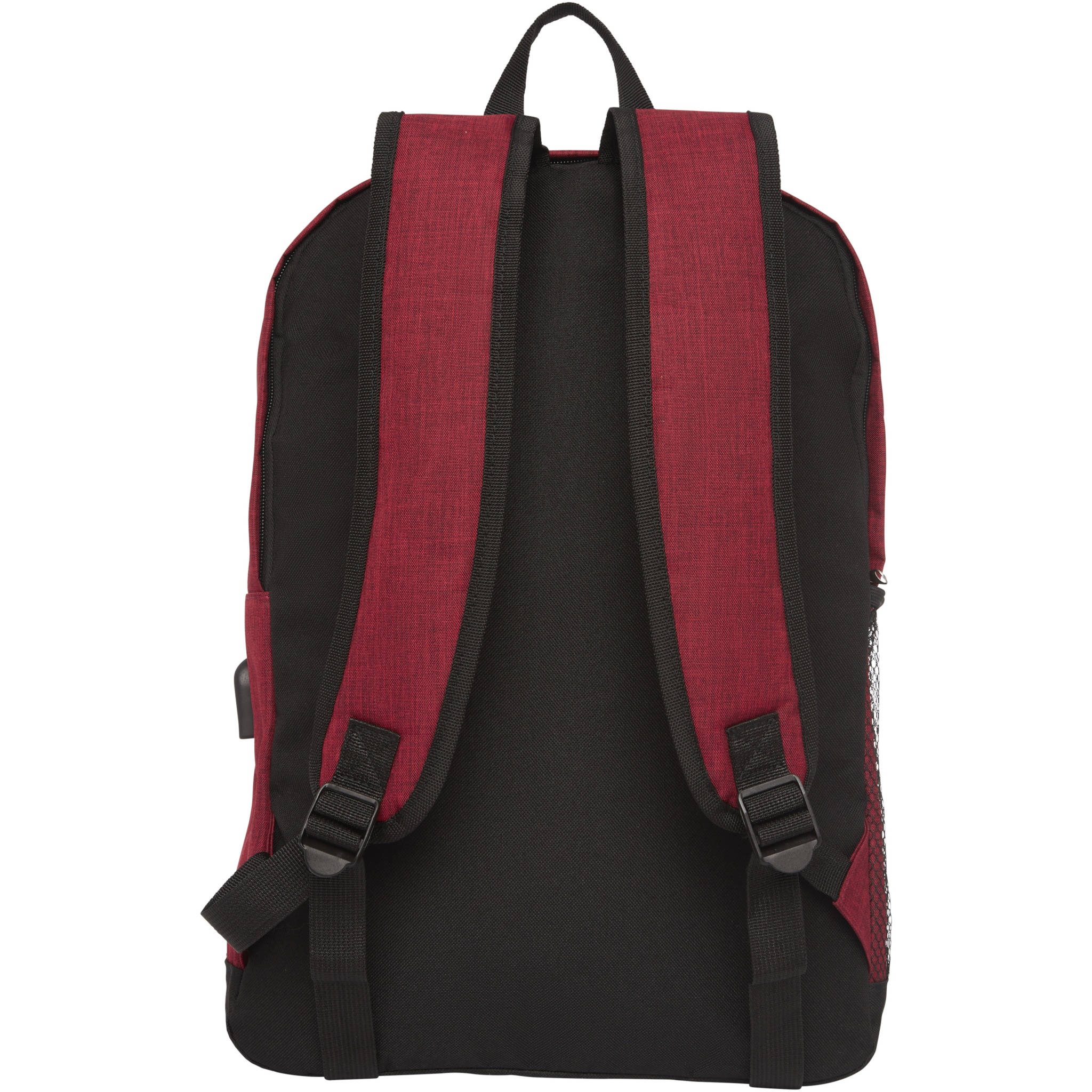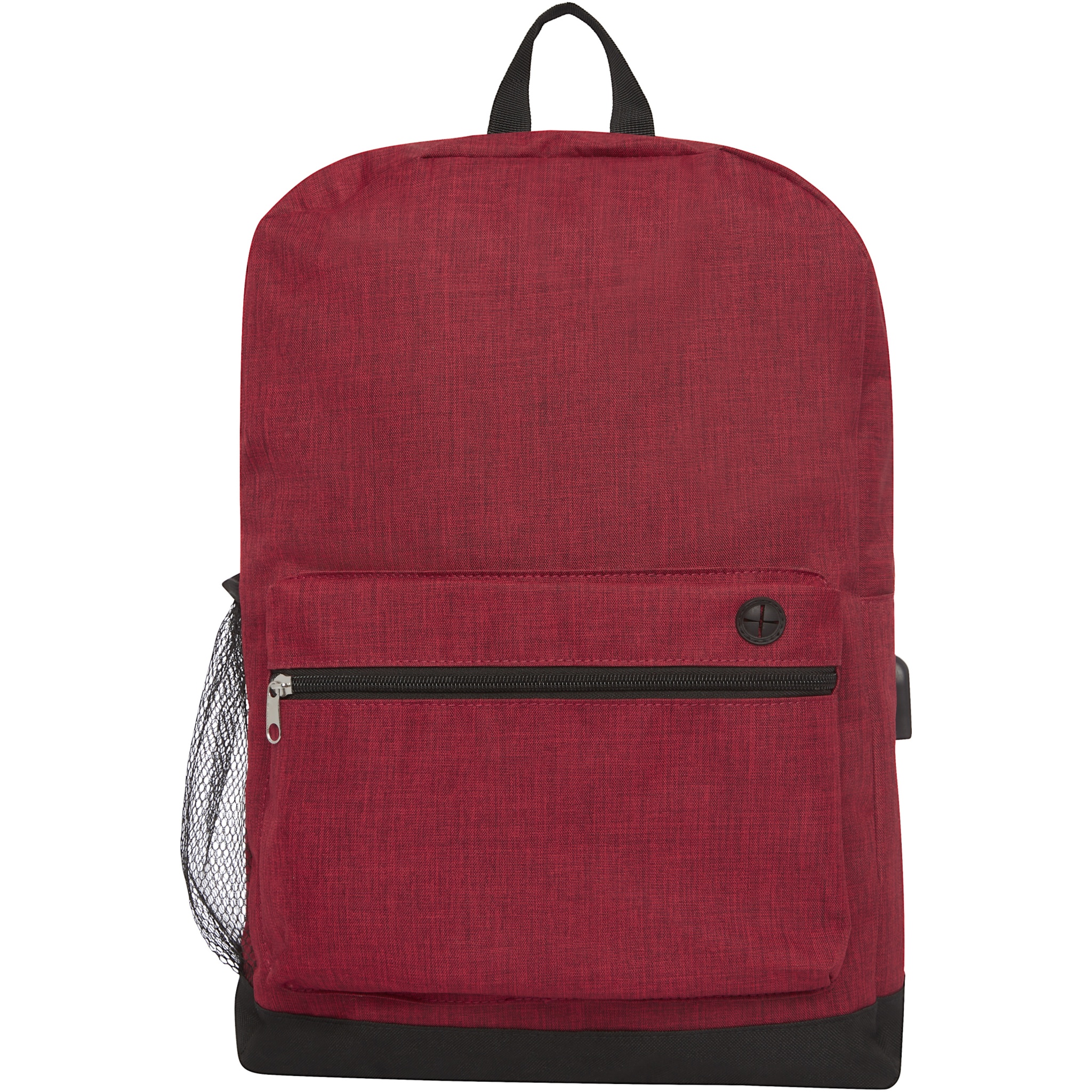 Передняя панель рюкзака для ноутбука оформлена с эффектом меланжевой расцветки, а нижняя часть и задняя панель окрашены в черный цвет. Оснащен большим главным отделением на молнии с чехлом для ноутбука 15,6" и передним отделением на молнии для быстрого доступа к мобильным устройствам. Поставляется с портом для USB, включая кабель USB-A с 1 выходным разъемом и 1 – входным. Имеет удобные плечевые ремни с подкладкой, ручку и сетчатый карман для бутылки с водой. Реальный цвет изделия может незначительно отличаться в зависимости от особенностей набивки, окраски и структуры ткани.