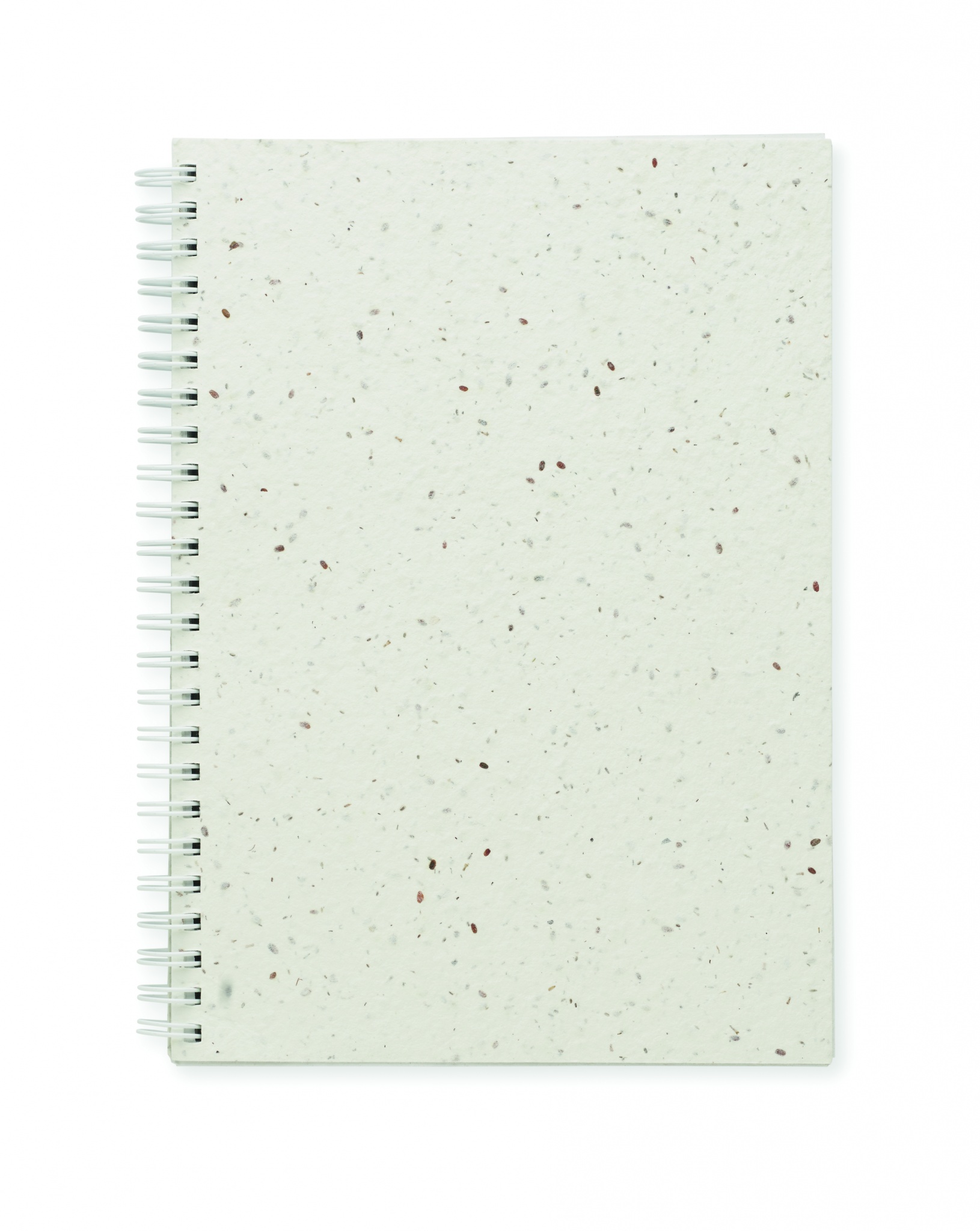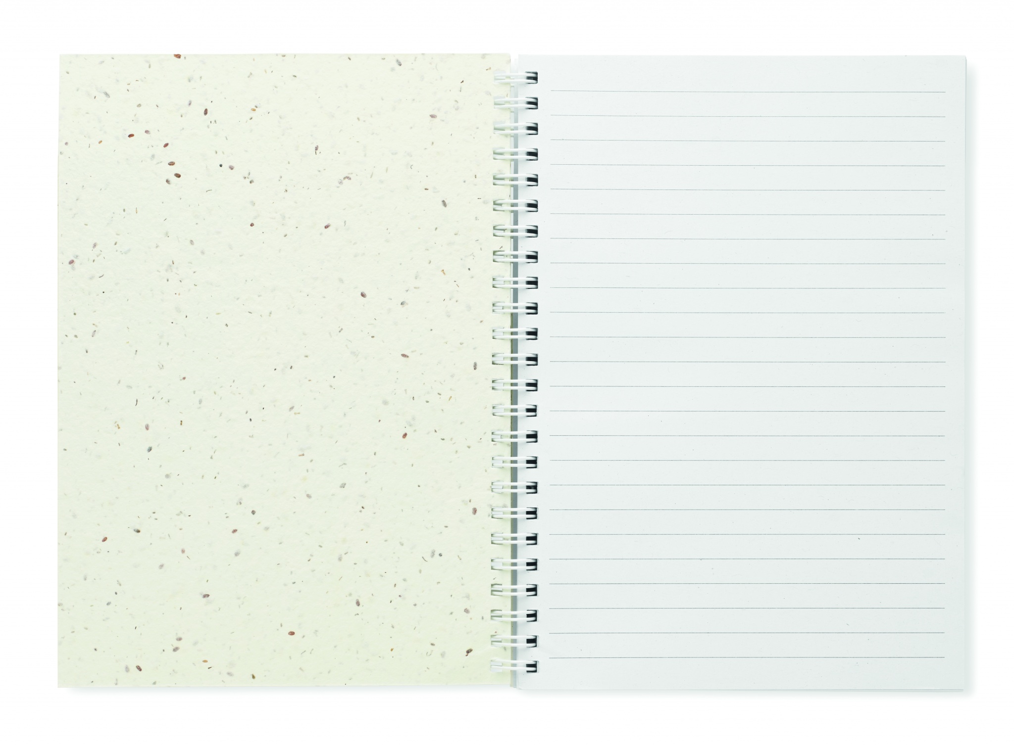 Блокнот A5 с обложкой из посевной бумаги. Двойная проволока. 200 линованных страниц из переработанной бумаги (100 листов).