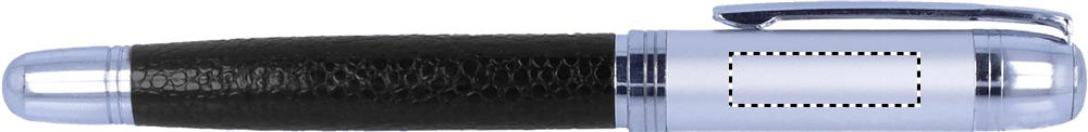 Блокнот формата А5 из искусственной кожи с контрастной строчкой. 120 листов линованной бумаги и металлическая ручка с черными чернилами.