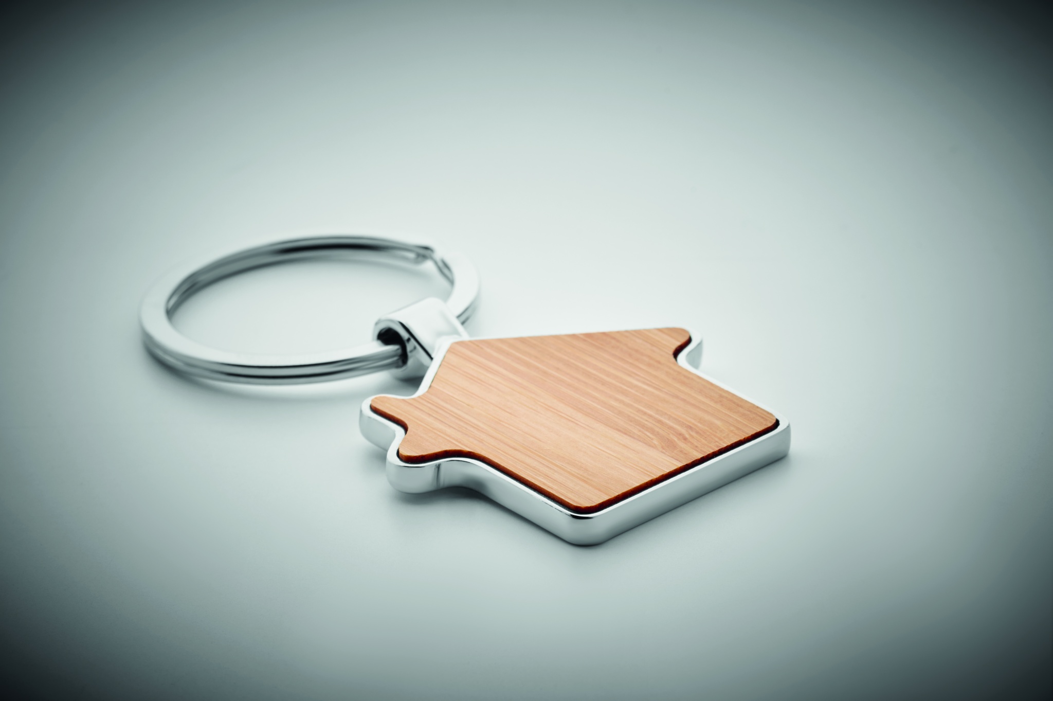 Лого трейд бизнес-подарки фото: Брелок домик бамбук NORDIC