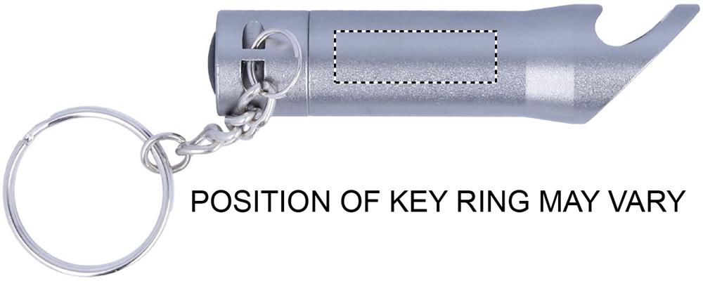 Металлический брелок с функциями LED фонарика и открывалки. Батарейки включены.