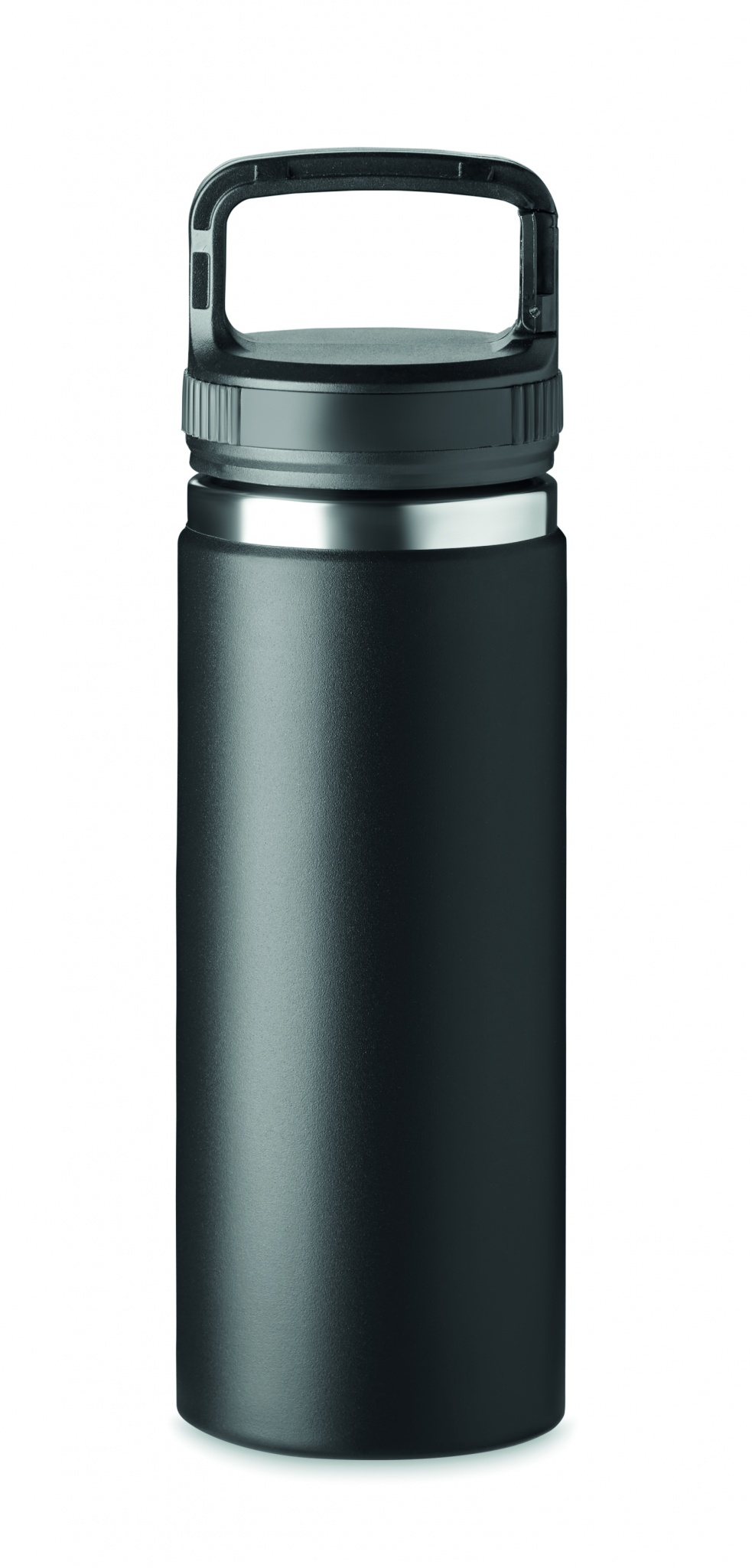 Термобутылка из нержавеющей стали с двойными стенками и удобной ручкой на крышке. Емкость: 500 мл.