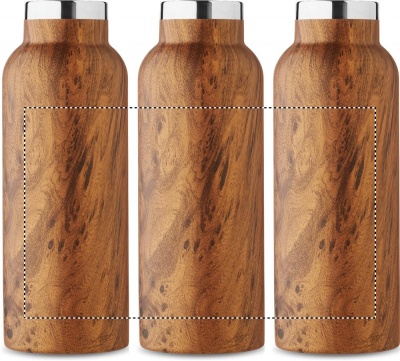 Термобутылка с двойными стенками из переработанной нержавеющей стали (90% переработанной нержавеющей стали и 10% нержавеющей стали) с деревянной крышкой и ручкой для переноски. Герметична. Объем: 500 мл.