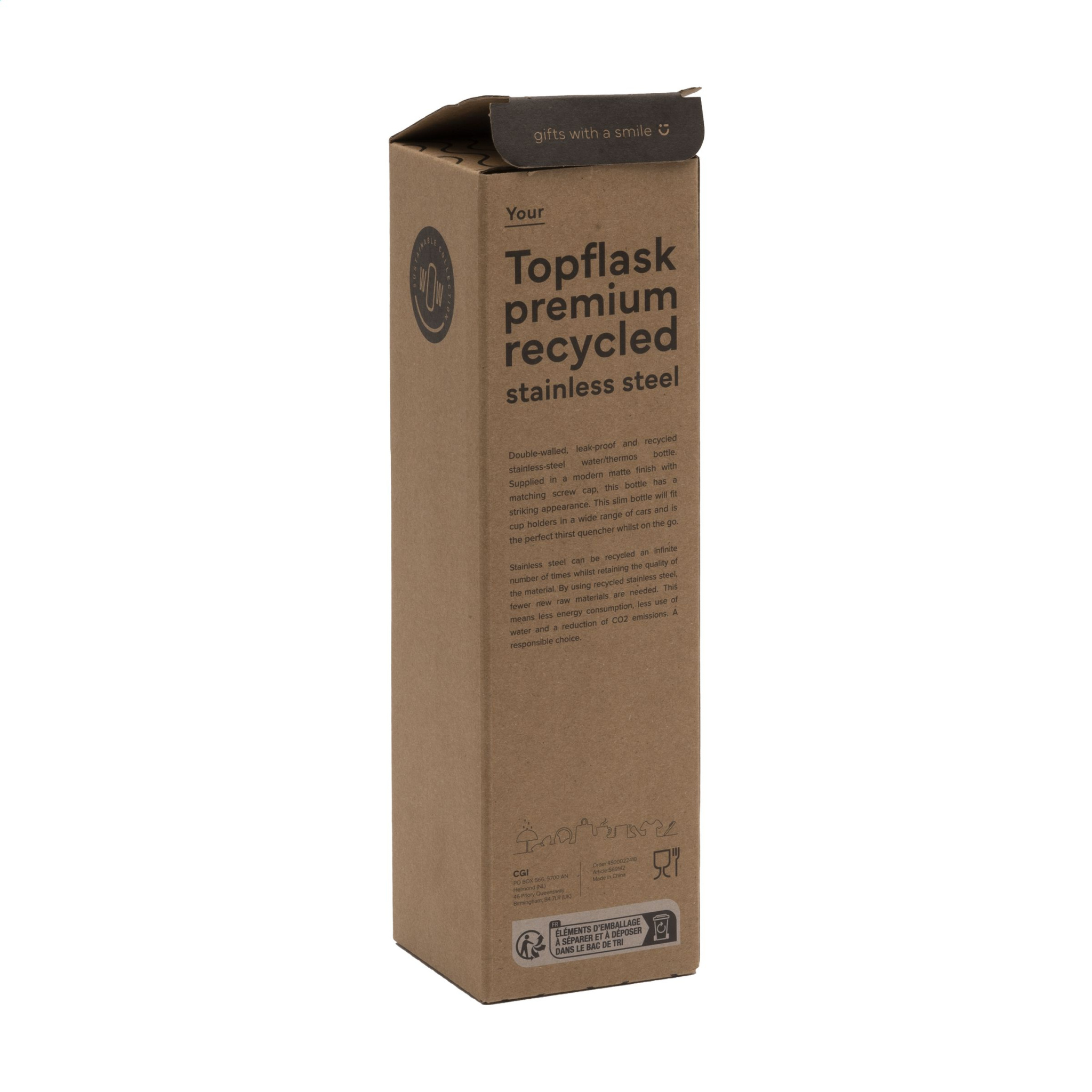WoW! Двустенная, герметичная бутылка для воды/термос из переработанной нержавеющей стали. Поставляется в современном матовом исполнении с соответствующей винтовой крышкой, эта бутылка имеет поразительный внешний вид. Эта тонкая бутылка подойдет для подстаканников в самых разных автомобилях и идеально утоляет жажду в дороге. Сертифицировано RCS. Общее количество переработанного материала: 85%. Емкость 500 мл. Нержавеющая сталь может быть переработана много раз, сохраняя при этом качество материала. При использовании переработанной нержавеющей стали требуется меньше нового сырья. Это означает меньшее потребление энергии и меньшее использование воды. Ответственный выбор. Каждый предмет поставляется в индивидуальной коричневой картонной коробке.