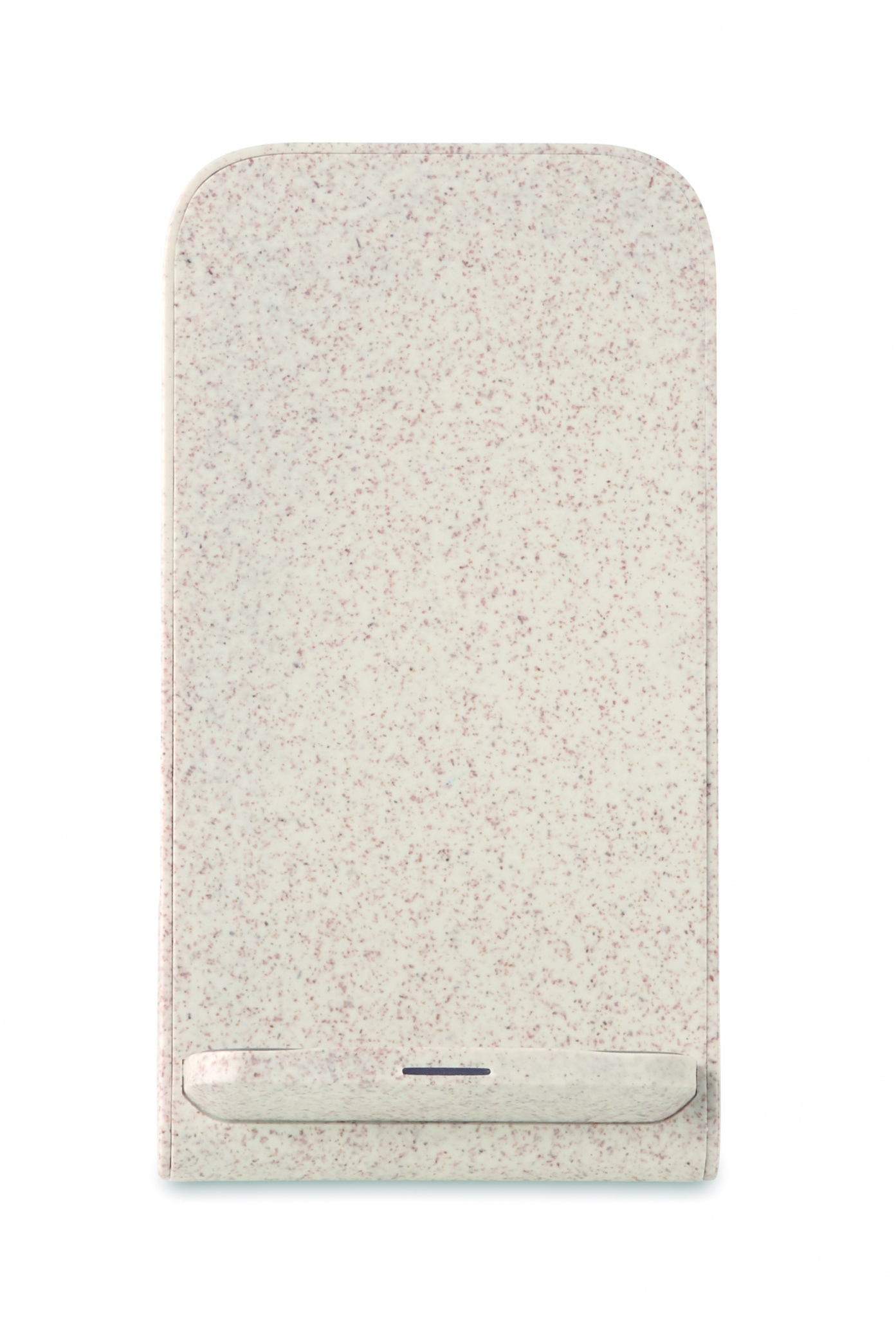 Зарядка беспроводная. Корпус из смеси 35% пшеничной соломы и 65% пластика АБС. Выход: DC5V/2A (10W) для быстрой зарядки. Совместим с последними версиями Android, iPhone® 8, X и новее.