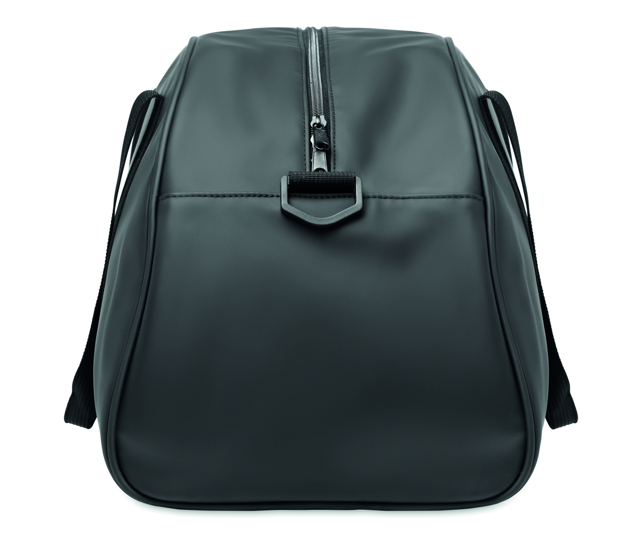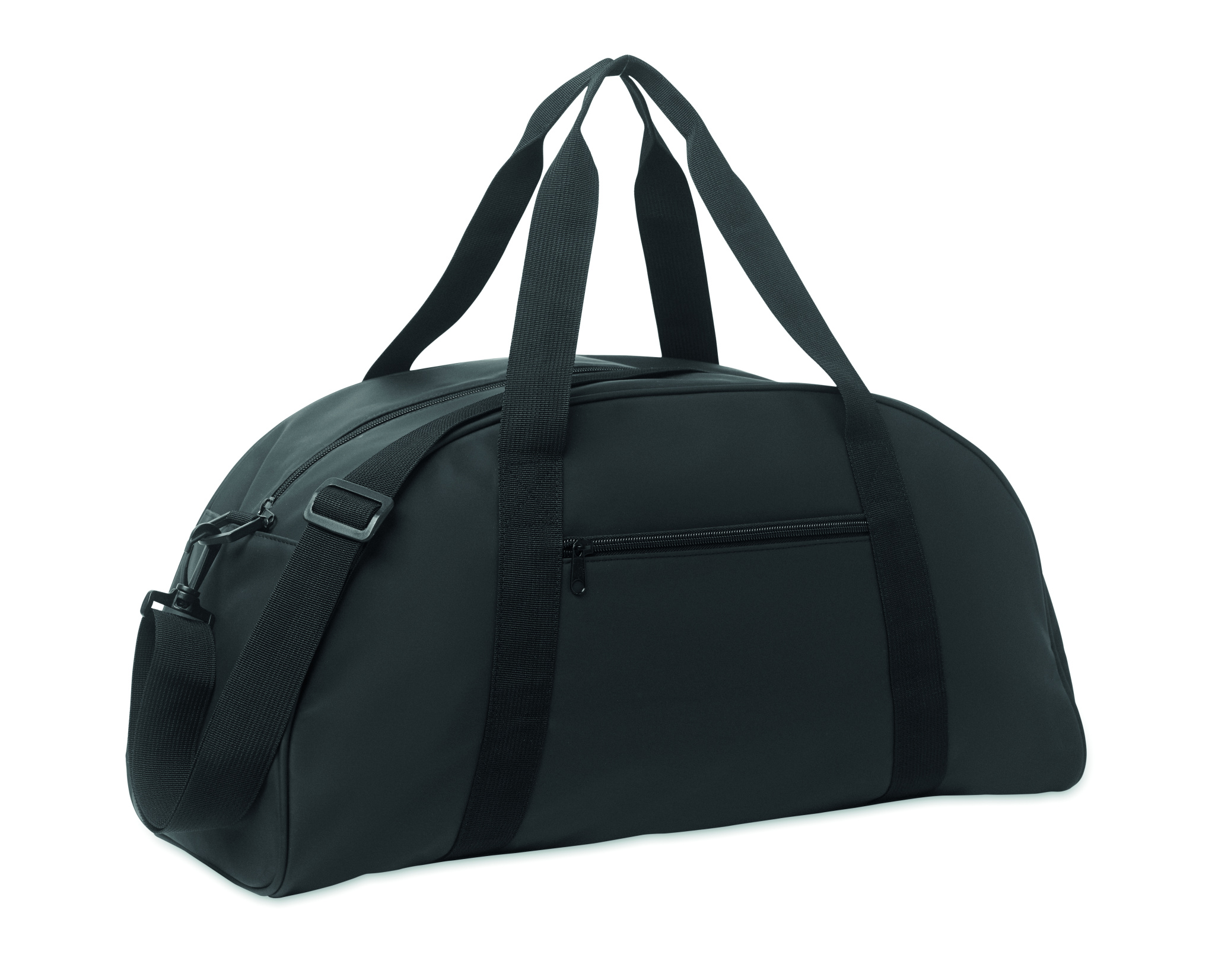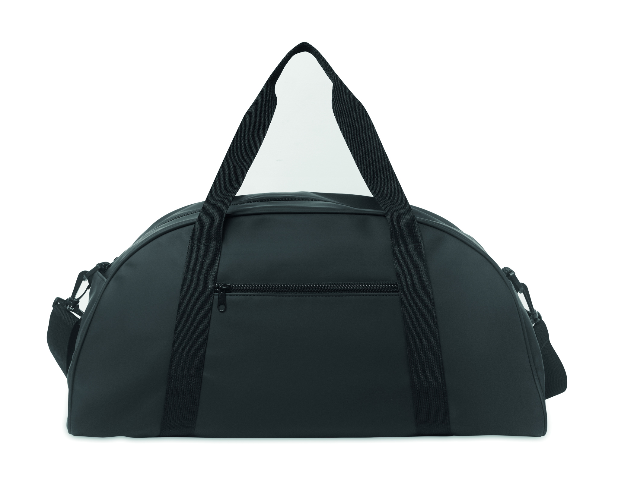 Duffle bag in soft PU with bottom foam reinforcement. One main compartment, zippered front pocket and zippered inner pocket. 210D RPET polyester lining. 2 handles and one adjustable and detachable shoulder strap