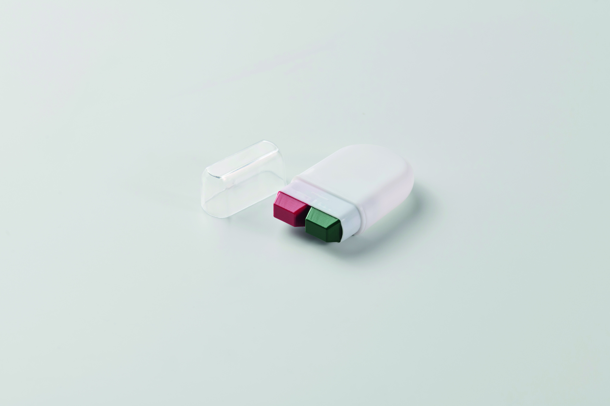 Body paint stick in national flag colours with wax paint in PP case and PS lid.