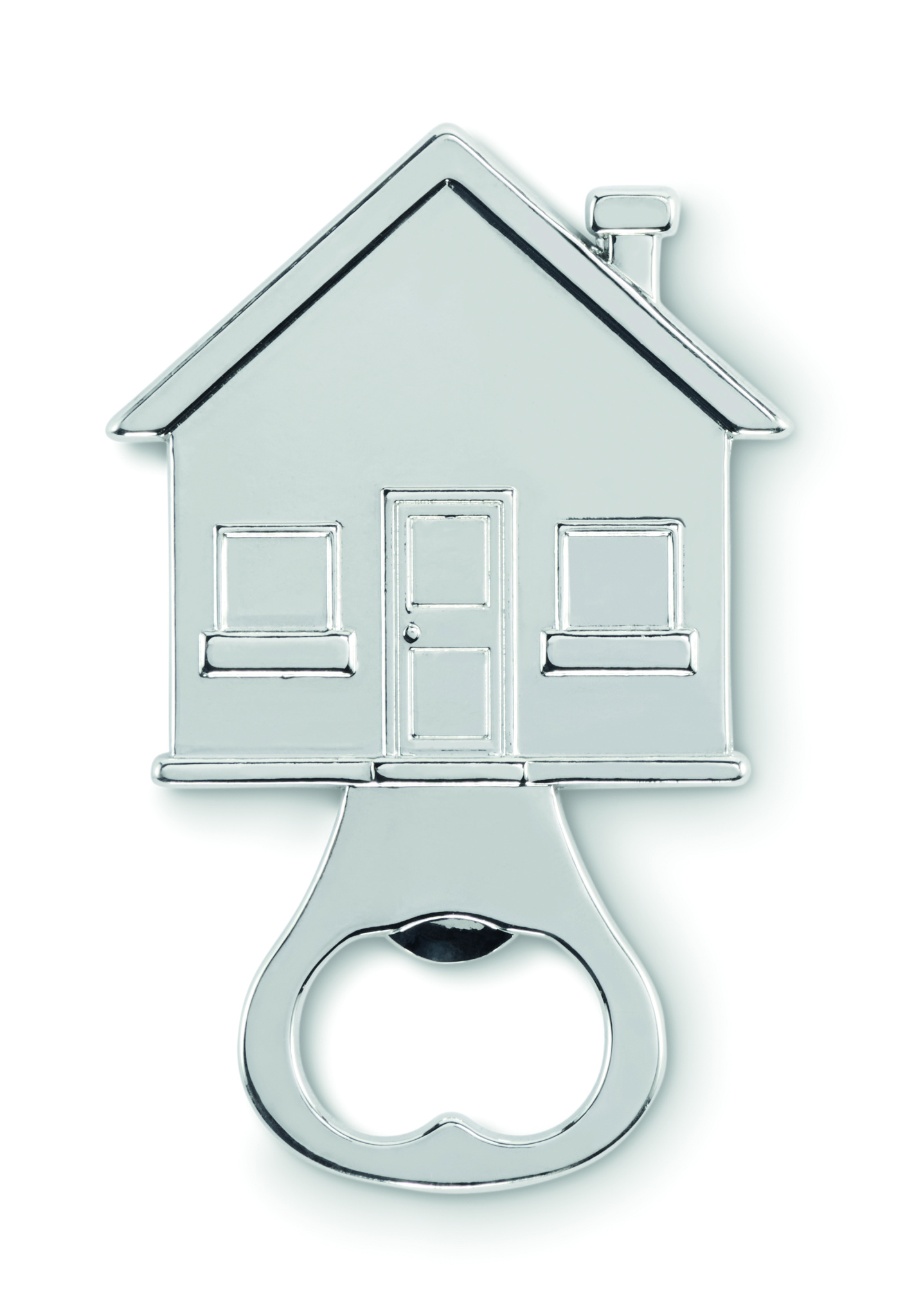 Zinc alloy bottle opener in house shape.