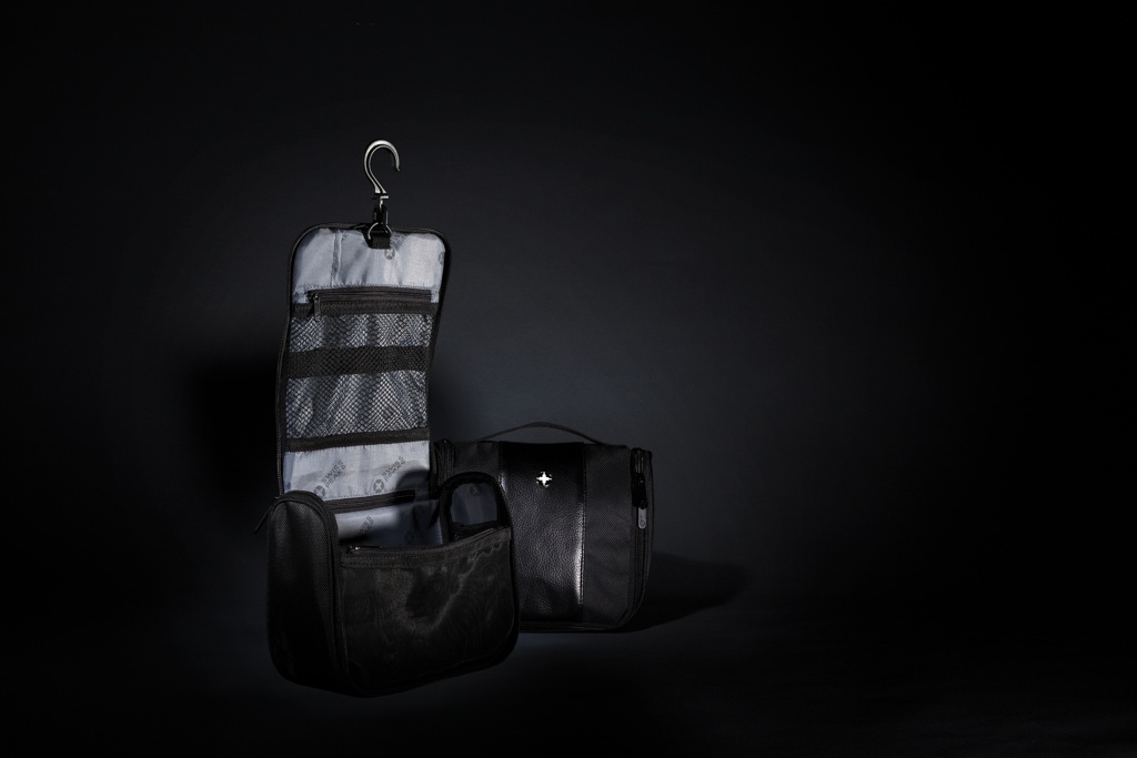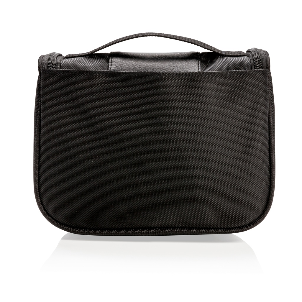 Косметичка из полиэстера 1680D с одним основным отделением и 4 подотделениями + 2 сетчатых открытых кармана, 1 сетчатый карман на молнии внутри. Включает крючок, чтобы повесить косметичку в удобном месте.