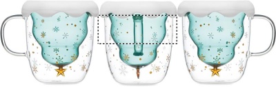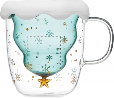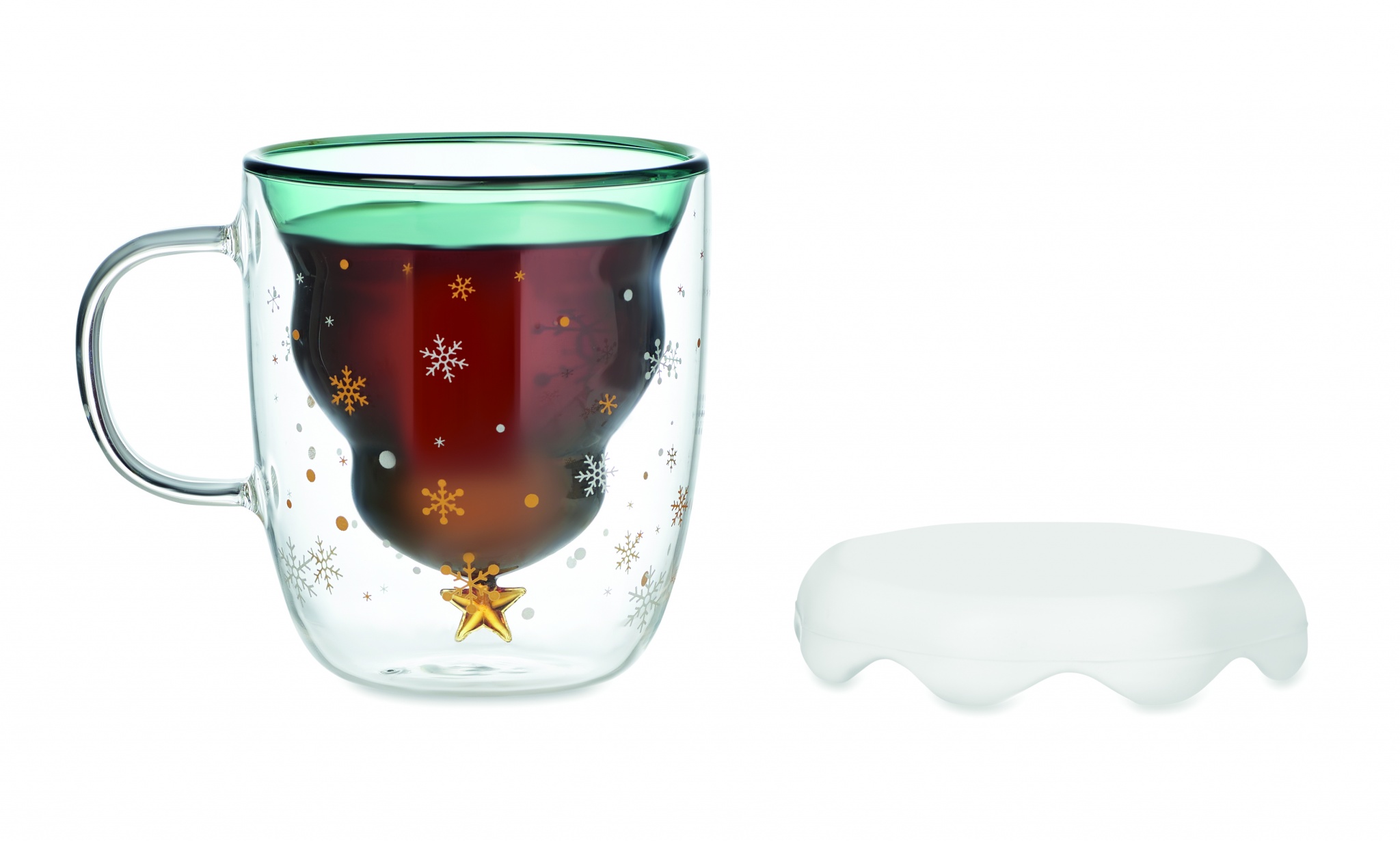 Кружка с двойными стенками из боросиликатного стекла с сезонным дизайном, силиконовой крышкой и подставкой. Объем: 250 мл.