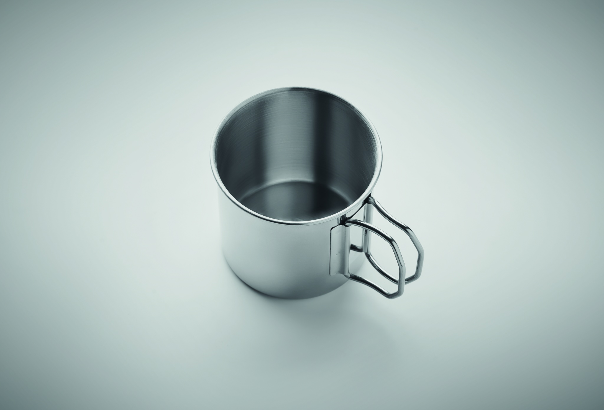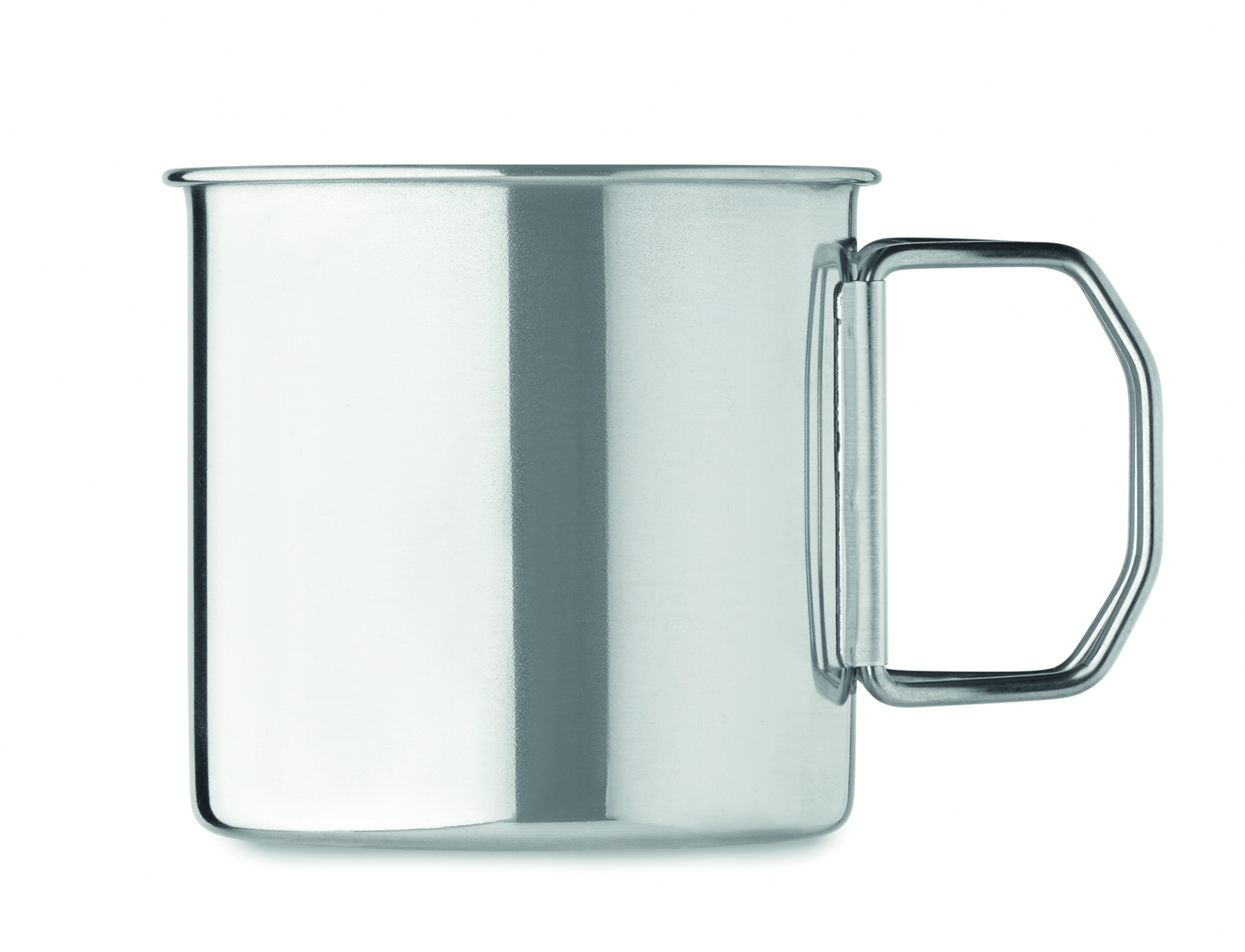 Одностенная кружка из нержавеющей стали со складной ручкой. Объем: 330 мл.