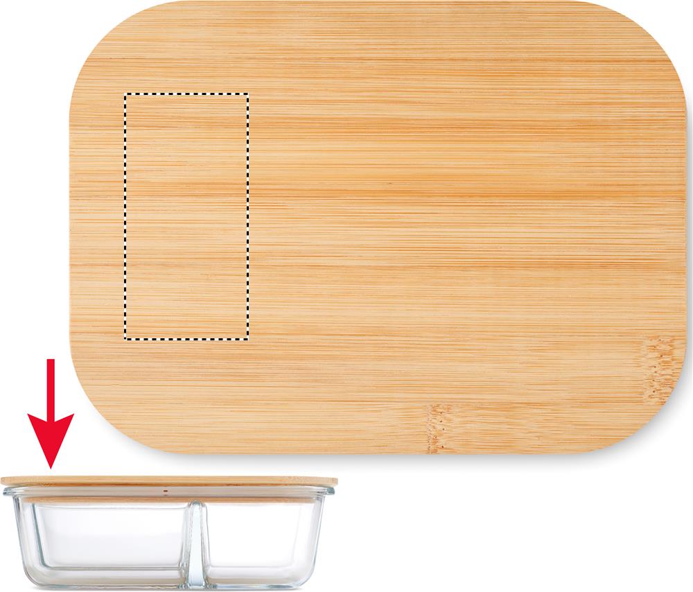 Ланч-бокс из боросиликатного стекла с 3 отделениями, бамбуковой крышкой и силиконовой лентой. Вместимость: 800 мл.