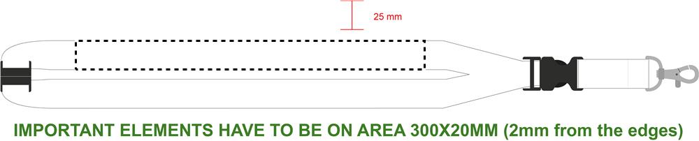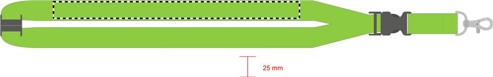 Ланьярд с металлическим карабином, отстегивающийся механизм, и предохранительный разъем. Ширина 25 мм.