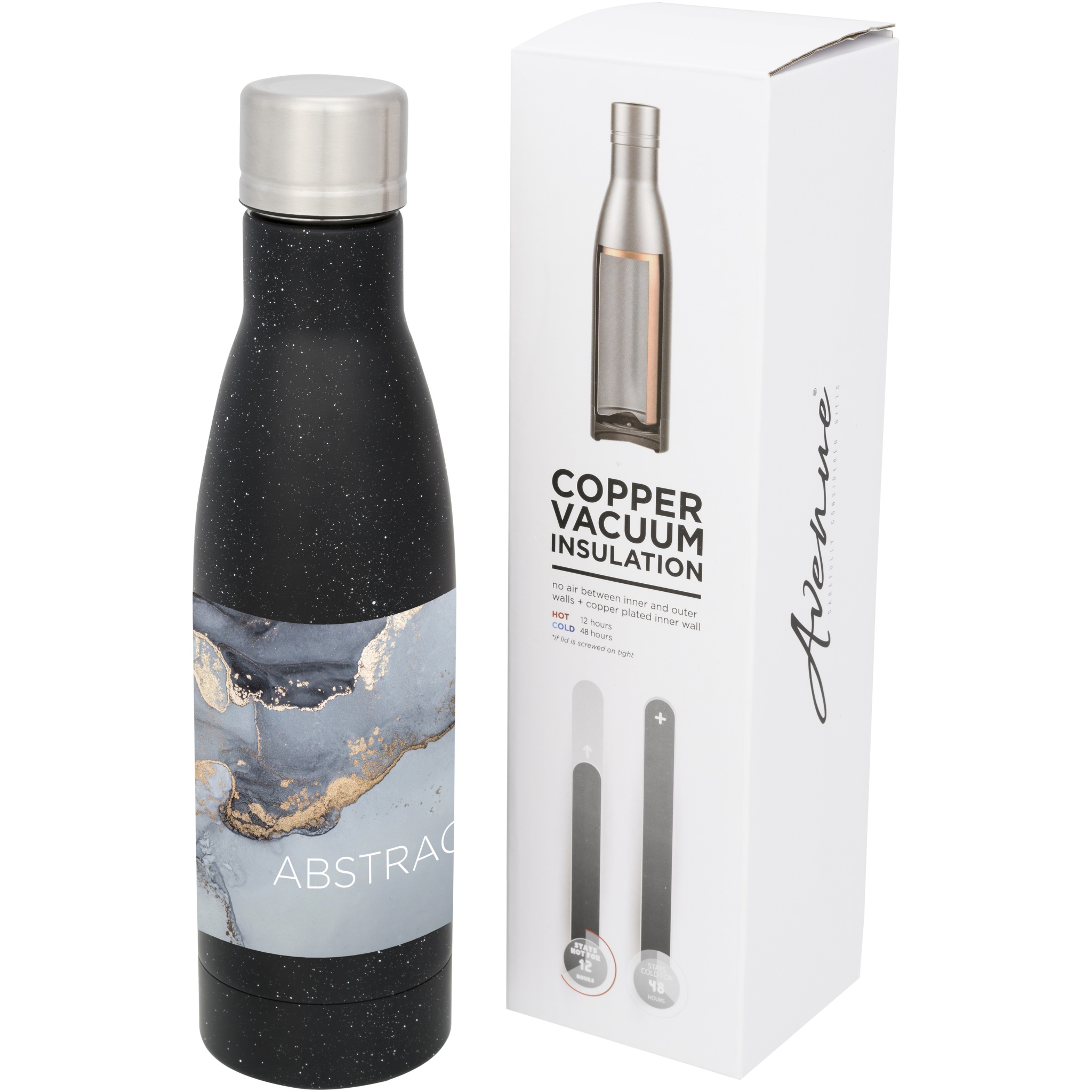 Медная бутылка Vasa объемом 500 мл в крапинку с вакуумной изоляцией, Сплошной черный